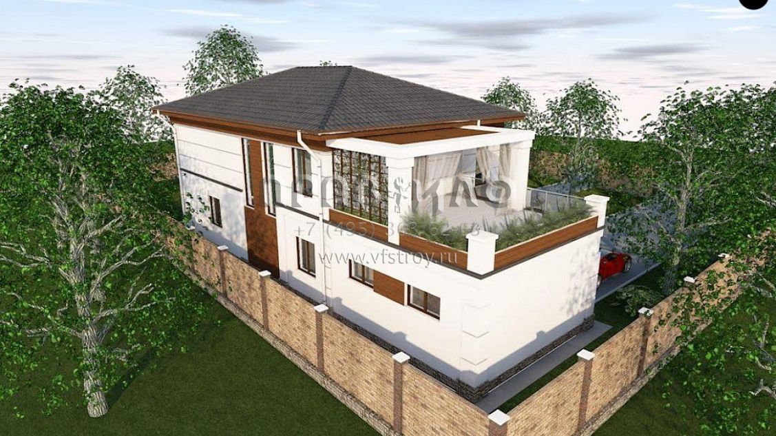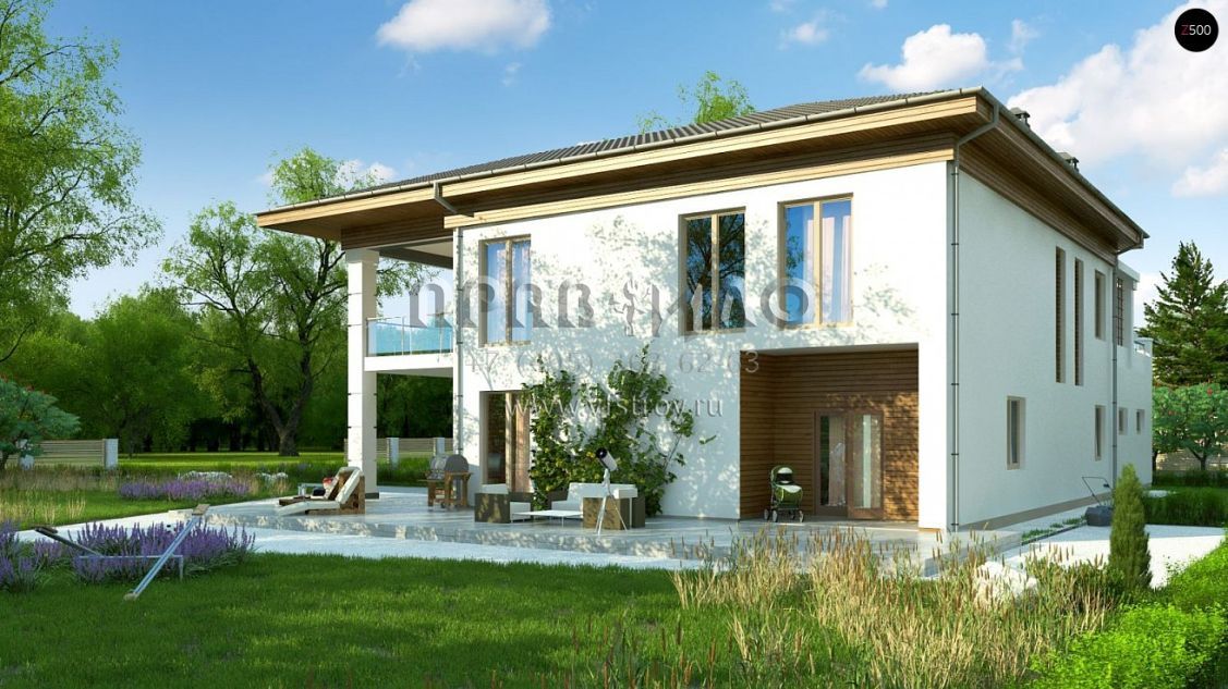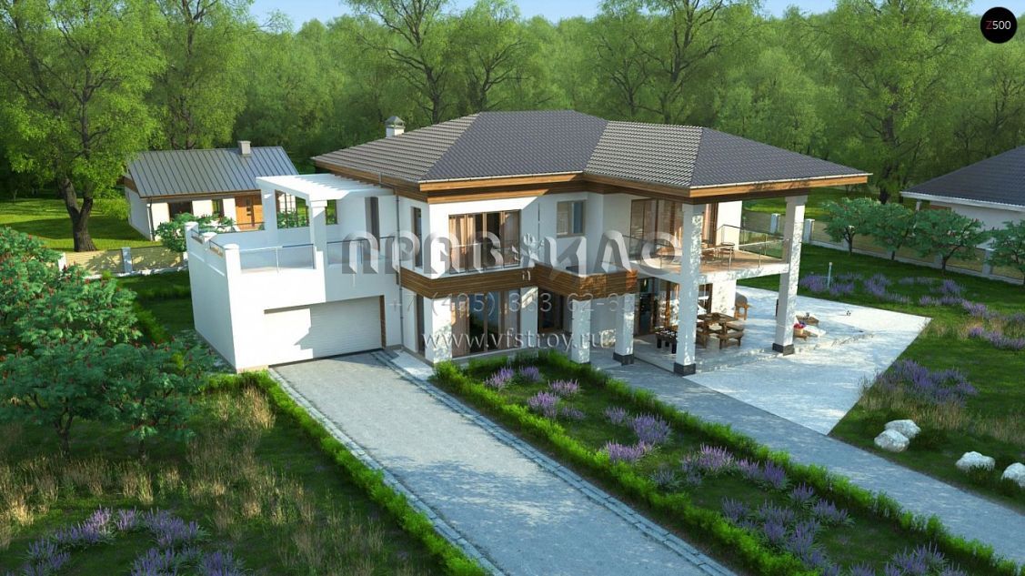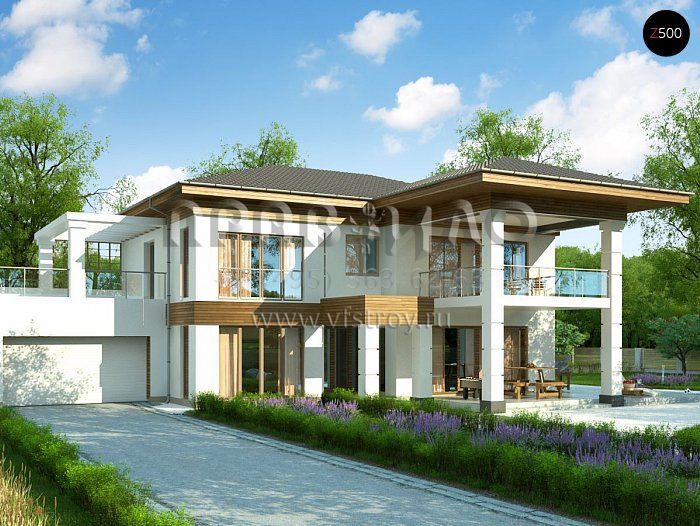 Проект красивой двухэтажной виллы с гаражом и с террасами S3-305-1 (Zz201)