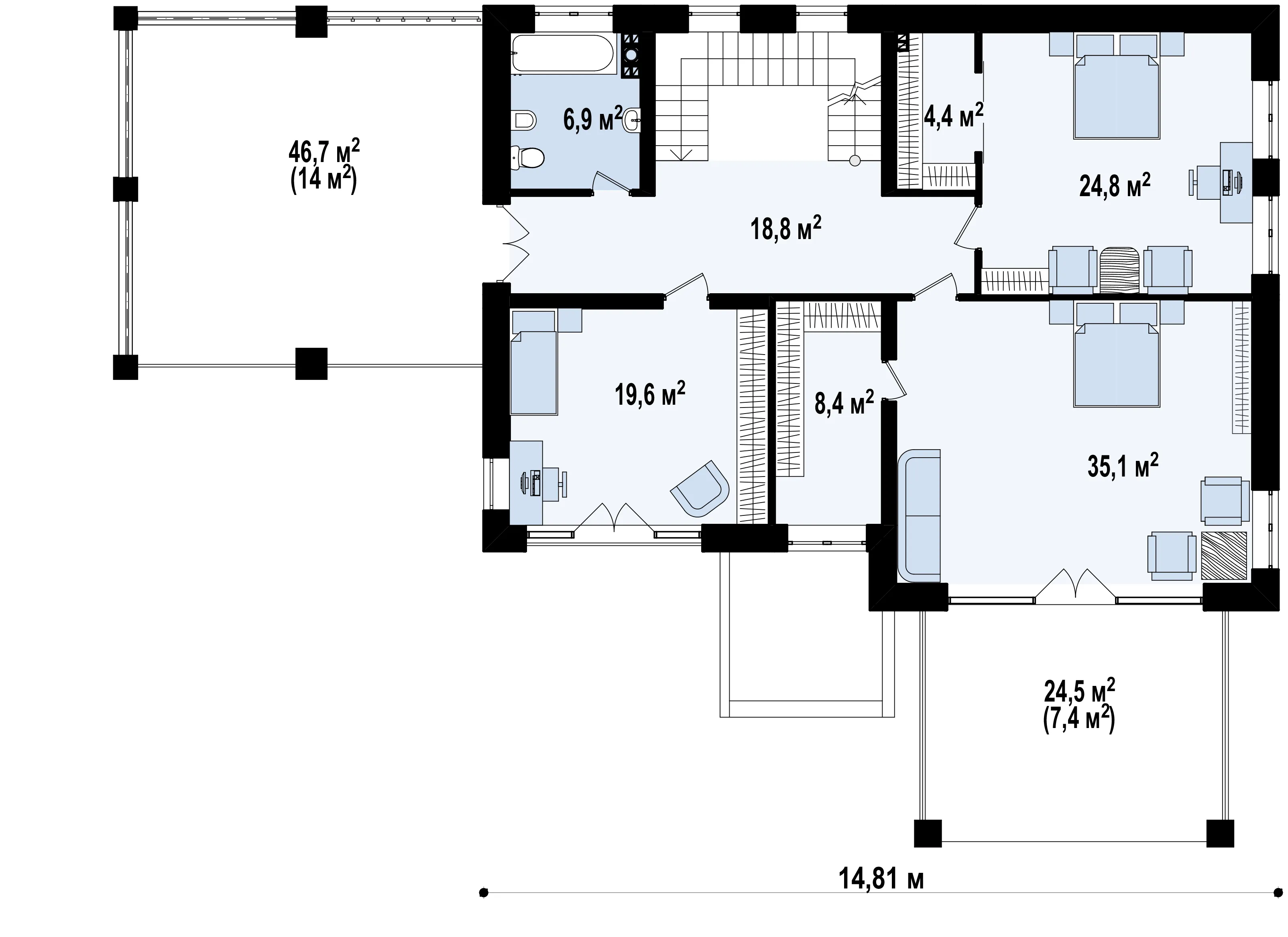 | Возможный материал кровли | металлочерепица, гибкая черепица, керамическая черепица, композитная черепица, цементно-песчаная черепица, фальцевая кровля |