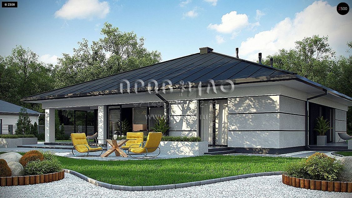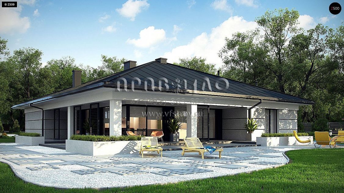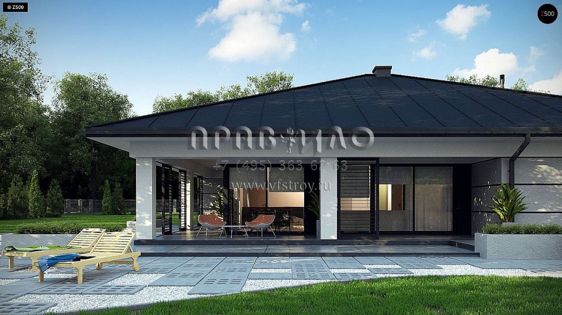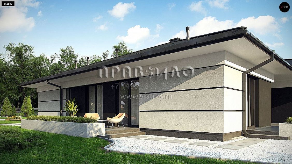 Проект современного одноэтажного дома с подвалом и гаражом на два автомобиля S3-409 (Z378 P)