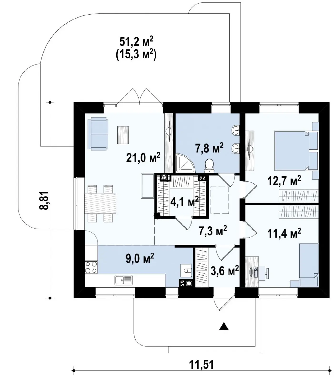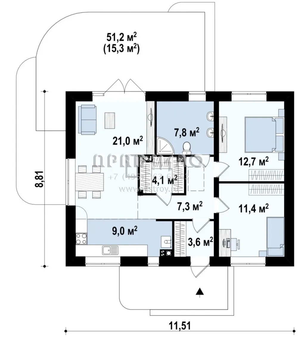 Проект частного экономичного дома с двускатной крышей S3-78 (Z252)