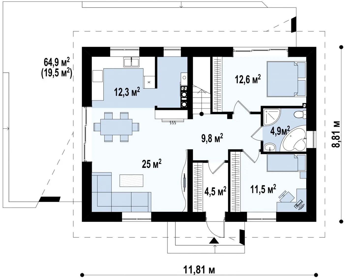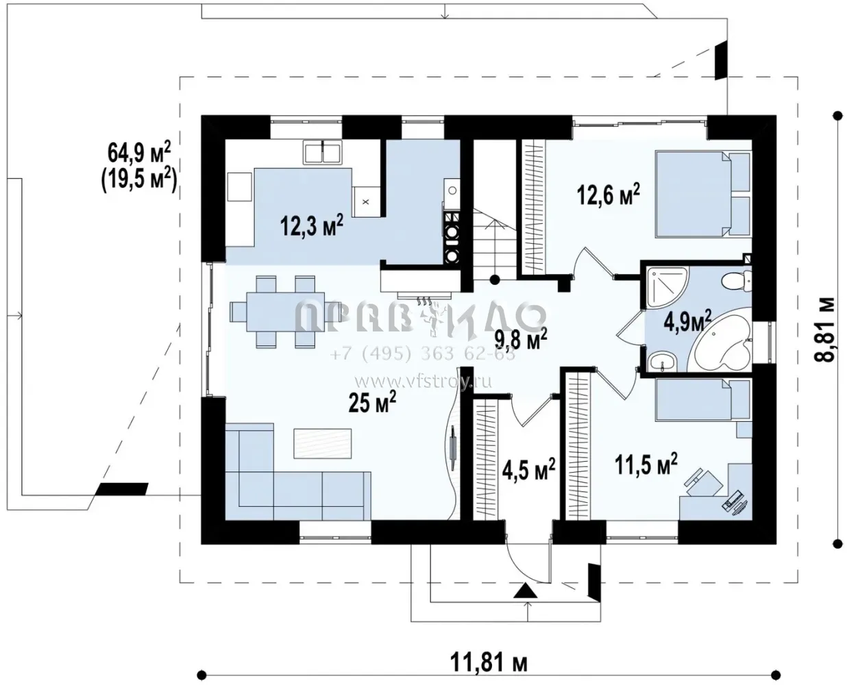 | Возможный материал кровли | металлочерепица, гибкая черепица, керамическая черепица, композитная черепица, цементно-песчаная черепица, фальцевая кровля |
