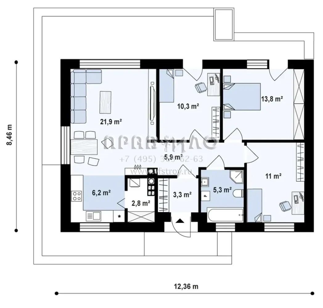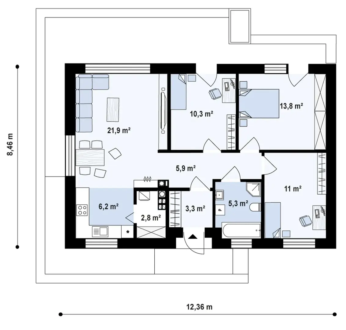 Проект компактного одноэтажного дома современного дизайна S3-81 (Z585)