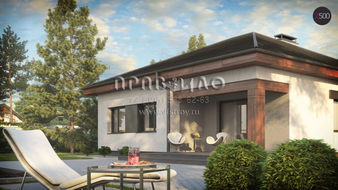 Проект современного одноэтажного дачного дома эконом класса S3-94 (Z273)