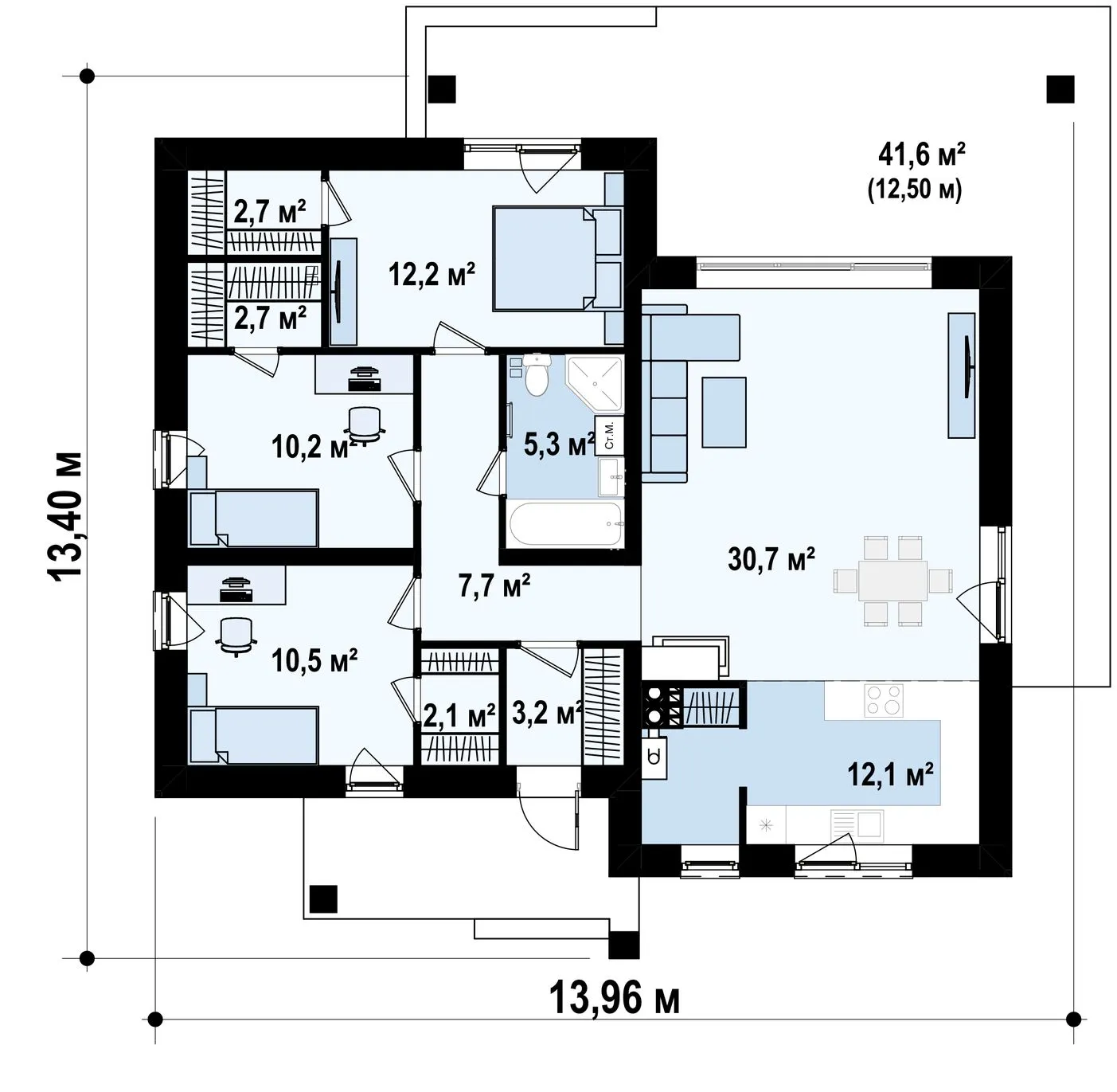 Проект дома в стиле хайтек из керамических блоков, кирпича или газобетона S3-96-2 (Zx105 B)