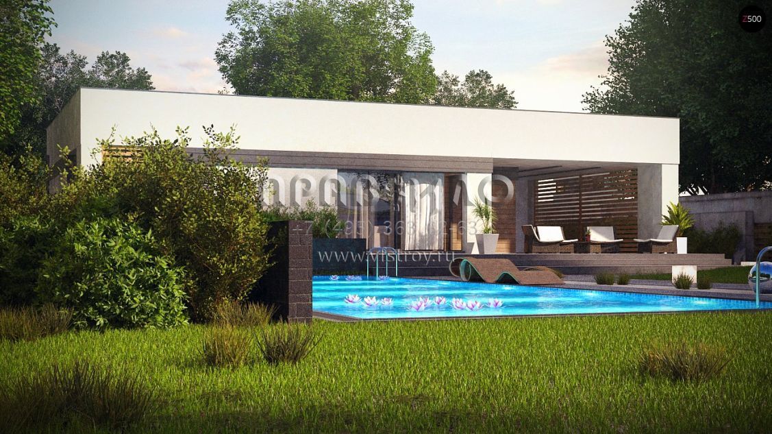 Проект современного дома с навесом для авто и с двумя террасами S3-99-2 (Zx117)