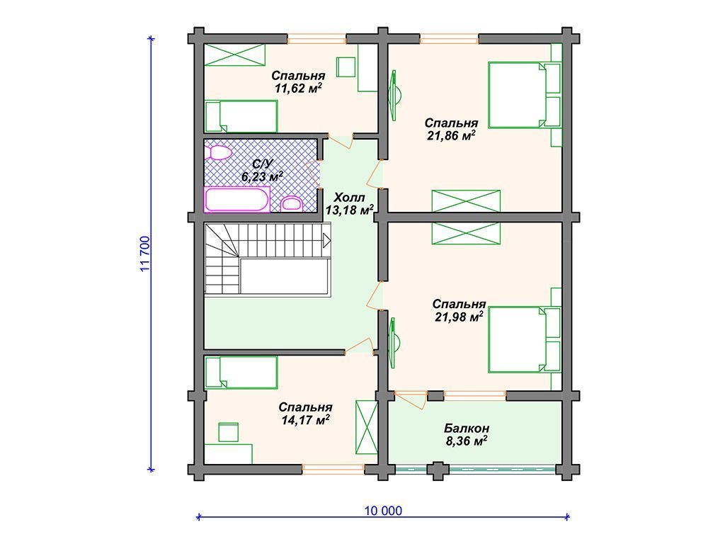 Проект деревянного одноэтажного дома с 3 спальнями S4-100 (ДО-168)