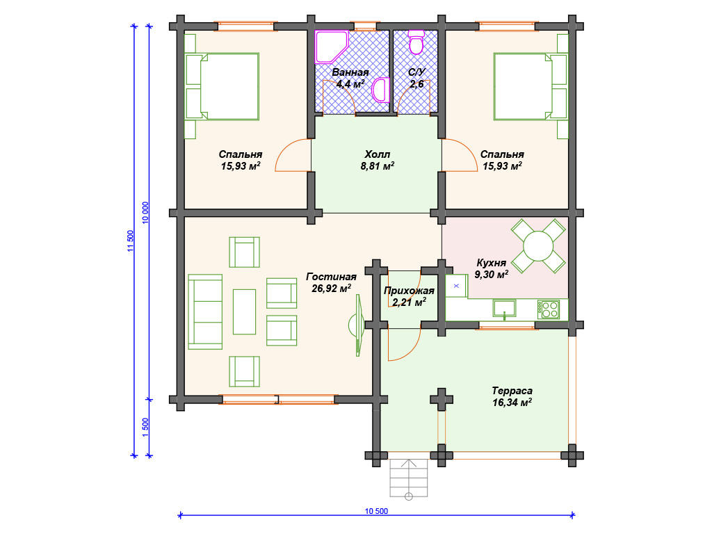 Проект одноэтажного дома с террасой S4-102 (ДС-060)