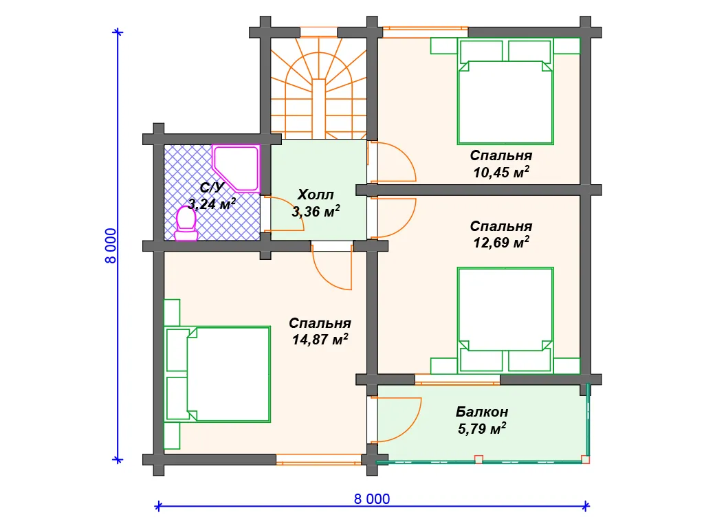Проект деревянного дома с 3 спальнями и мансардой S4-104 (ДС-014)