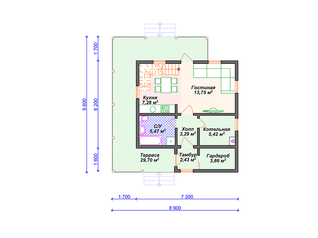 Проект каркасного дома с террасой S4-106 (И-088)