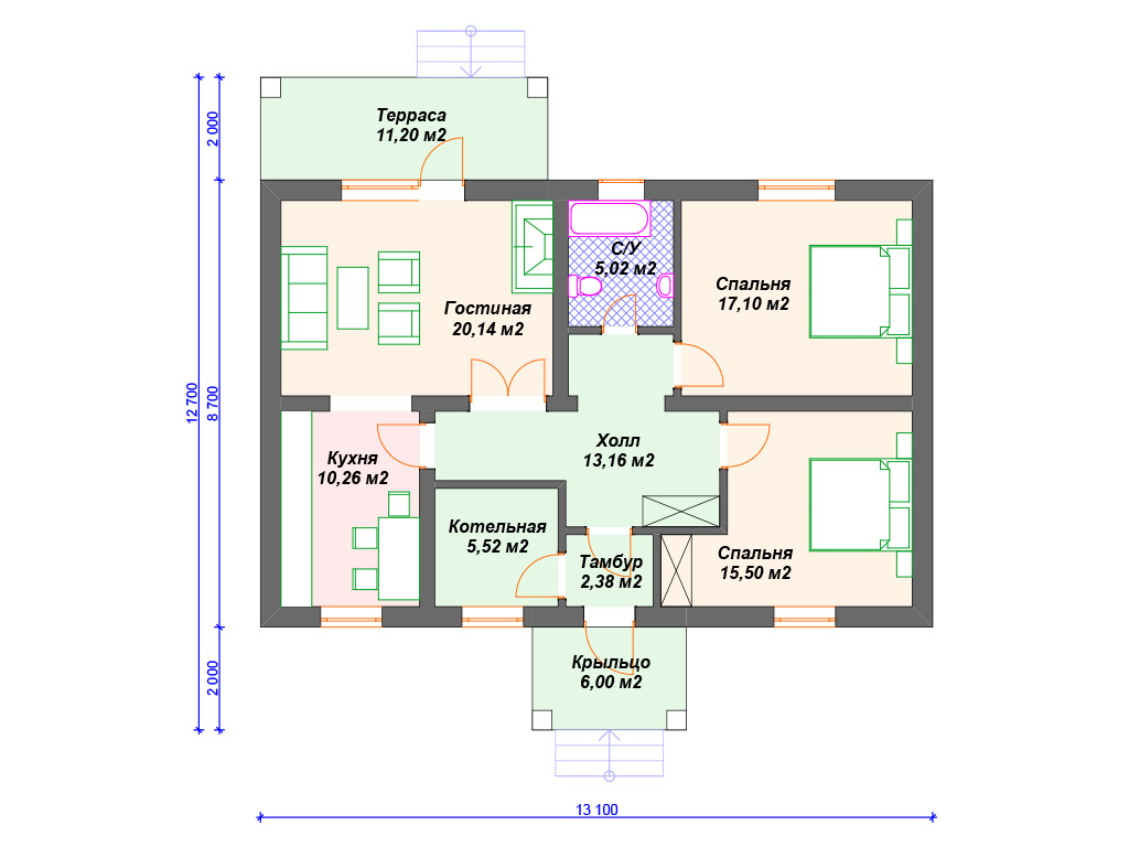 | Возможный материал кровли | металлочерепица, гибкая черепица, керамическая черепица, композитная черепица, цементно-песчаная черепица, фальцевая кровля |