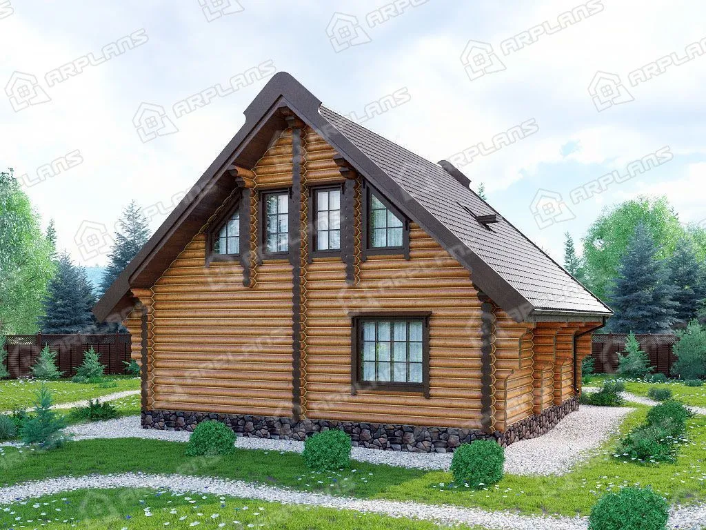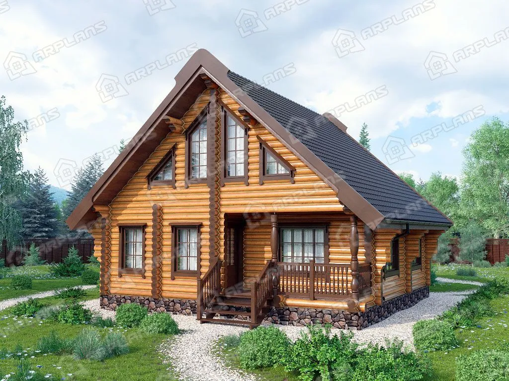 Проект деревянного дома из бревна 8 на 9 м с 3 спальнями S4-109 (ДО-131)