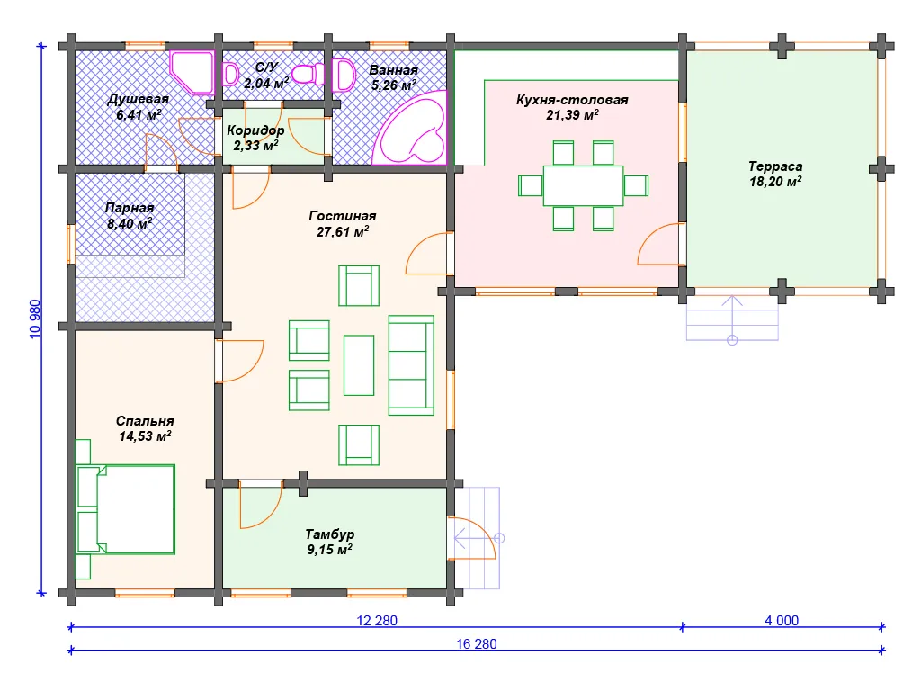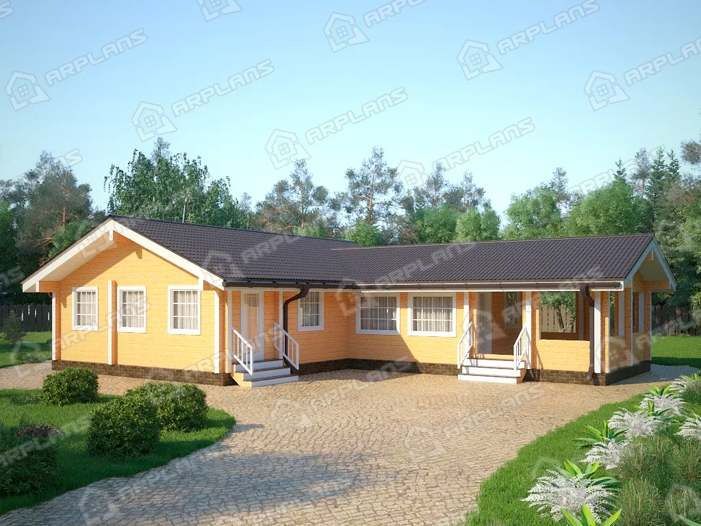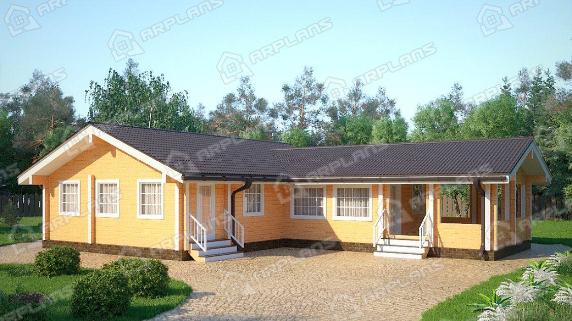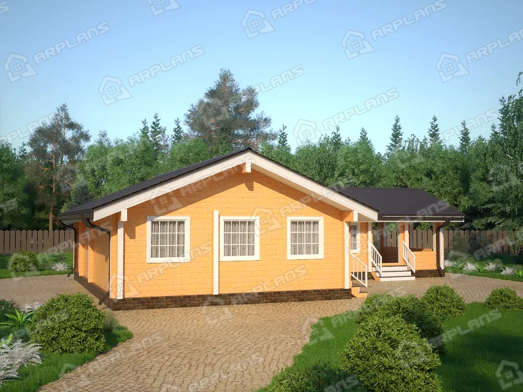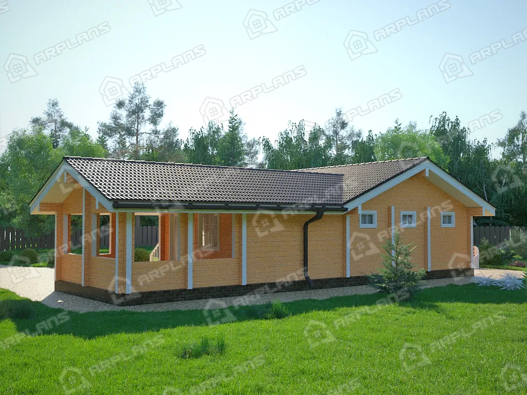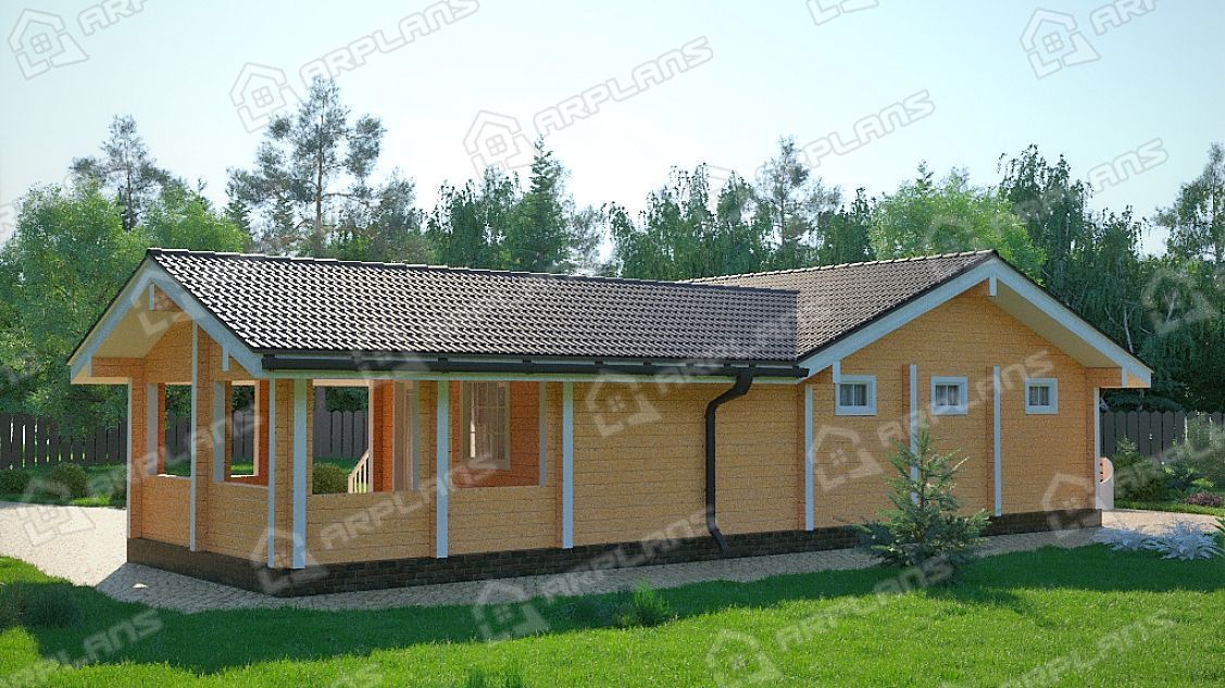 Проект одноэтажного деревянного дома с сауной и террасой S4-115 (ДС-089)