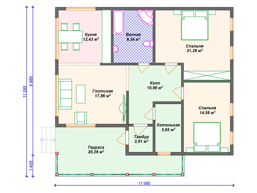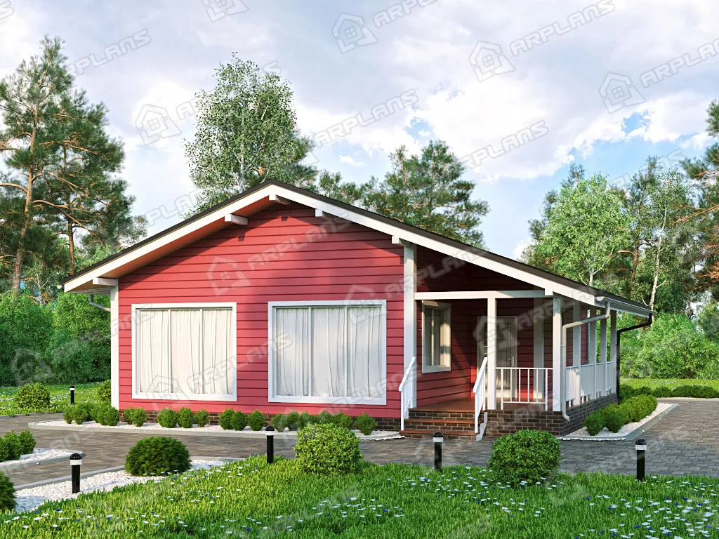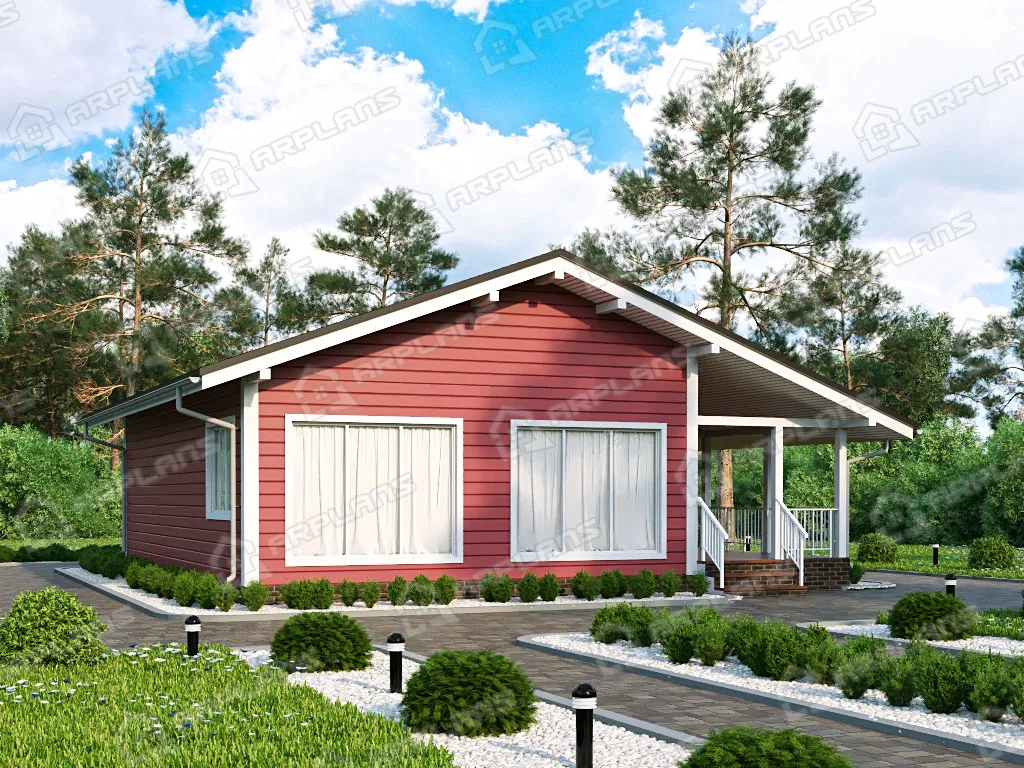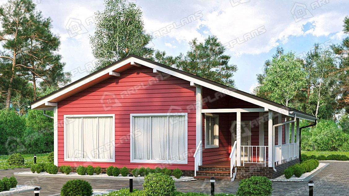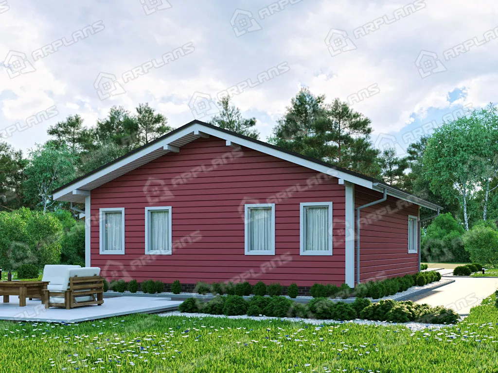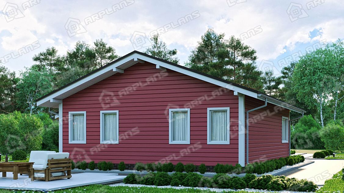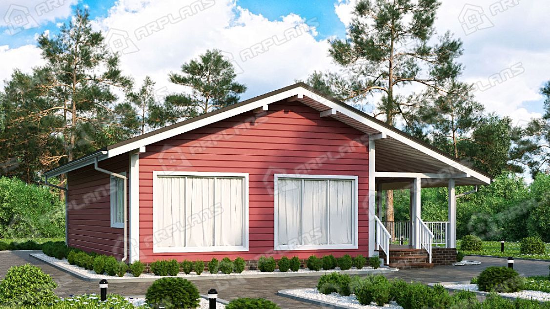 Проект каркасного дома с террасой и 3 спальнями S4-115 (И-072)