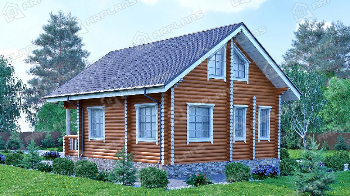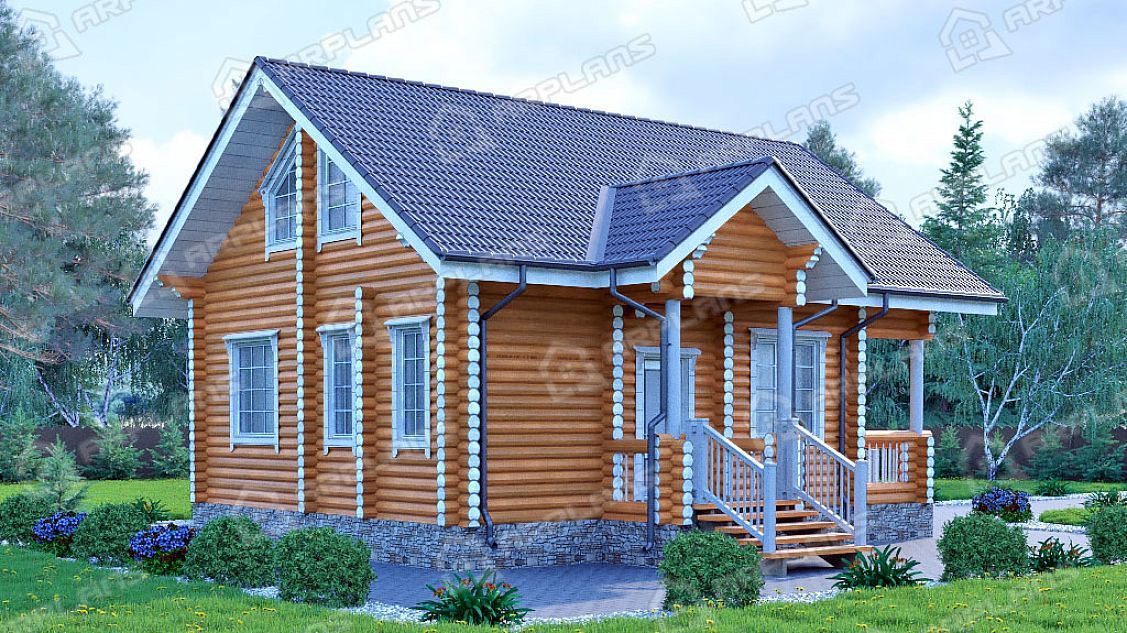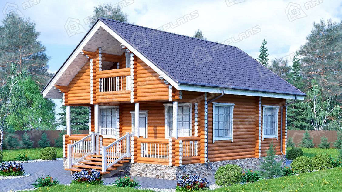Проект деревянного дома из бревна 7 на 7 м с 3 спальнями S4-116 (ДО-003)