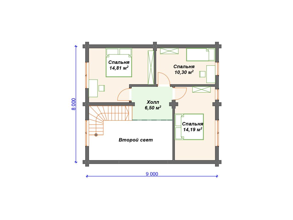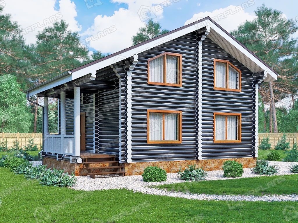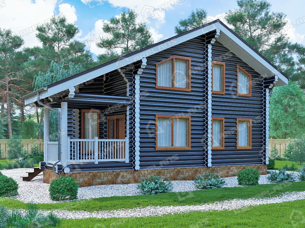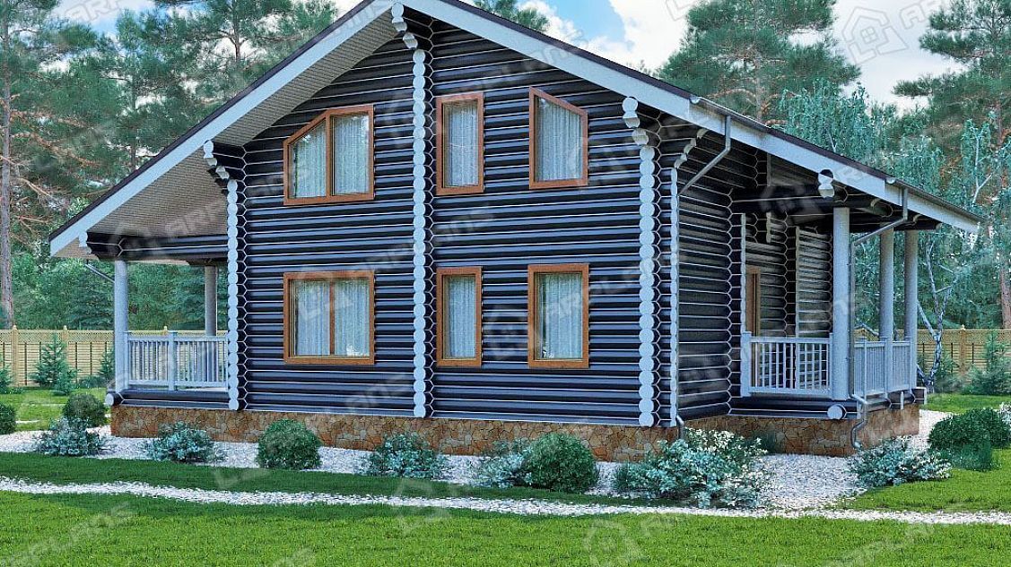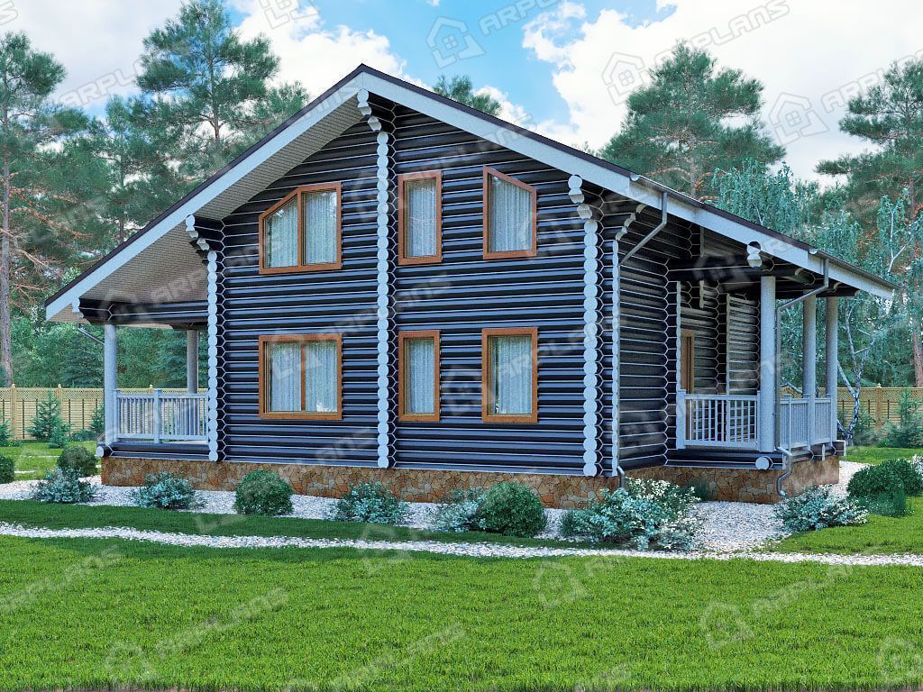 Проект деревянного дома из бревна 12 на 12 м с 3 спальнями S4-116 (ДО-122)