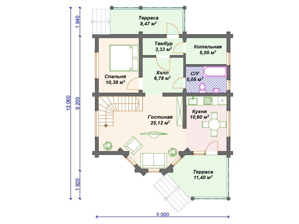 | Материал стен | оцилиндрованное бревно, профилированный брус, клееный брус |