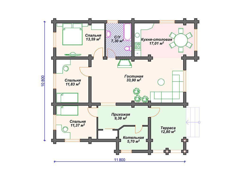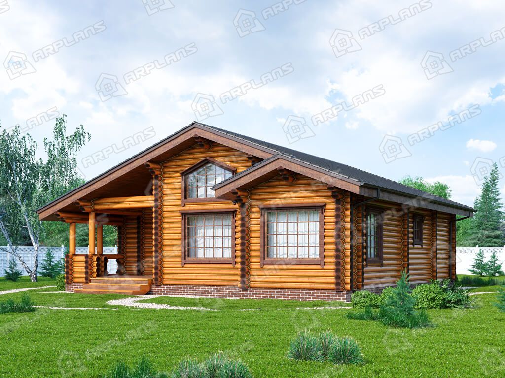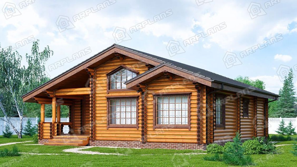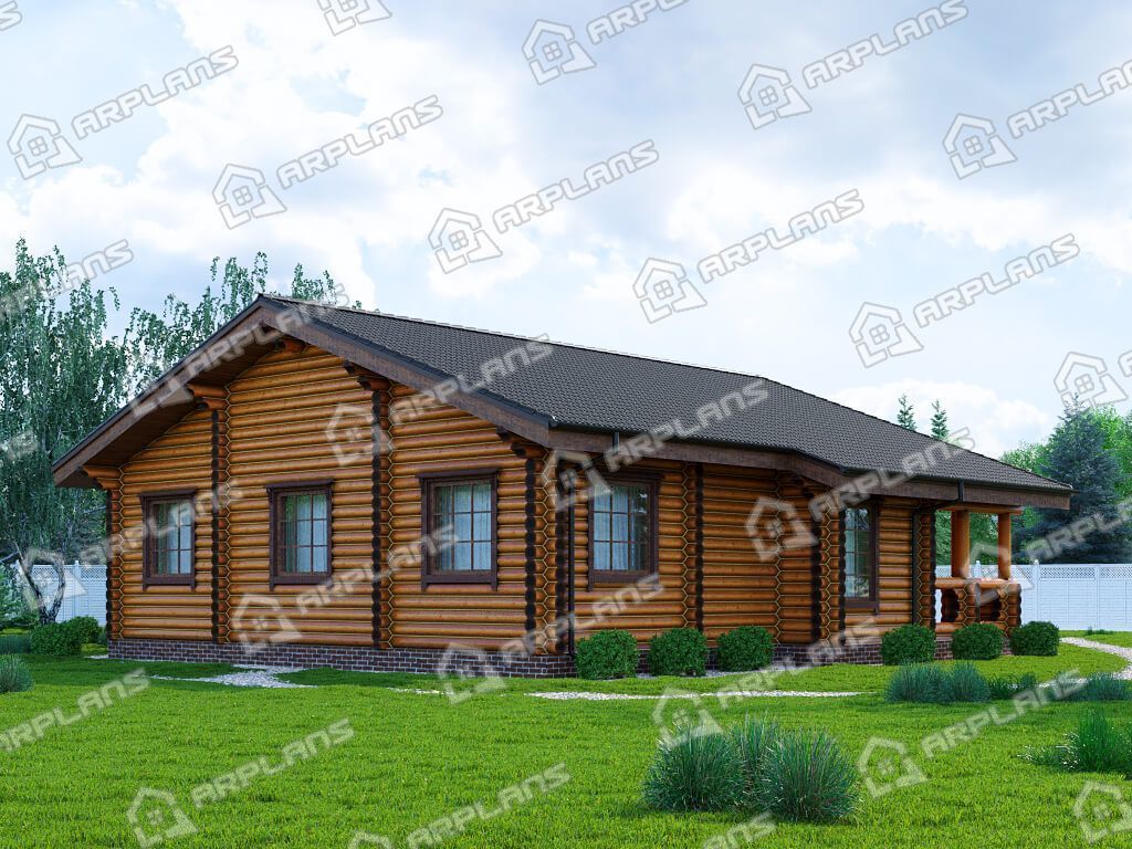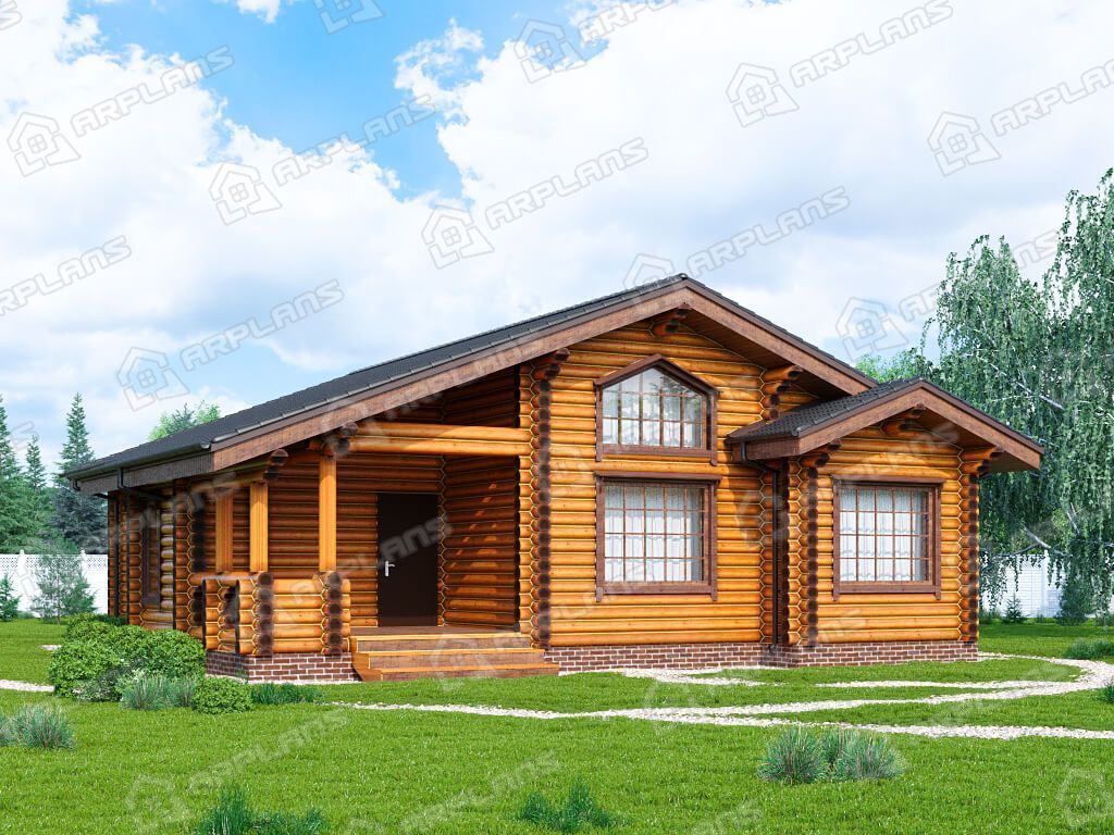 Проект деревянного дома из бревна с 3 спальнями S4-123 (ДО-165)