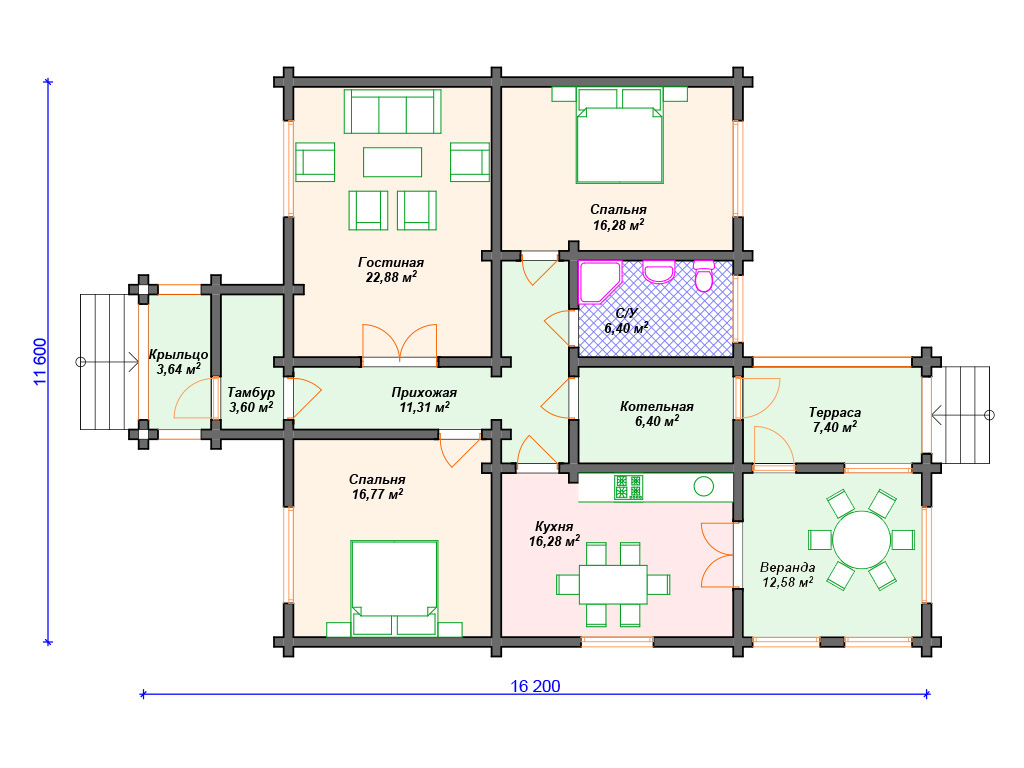 | Материал стен | оцилиндрованное бревно, профилированный брус, клееный брус |