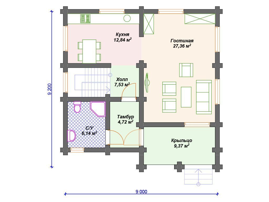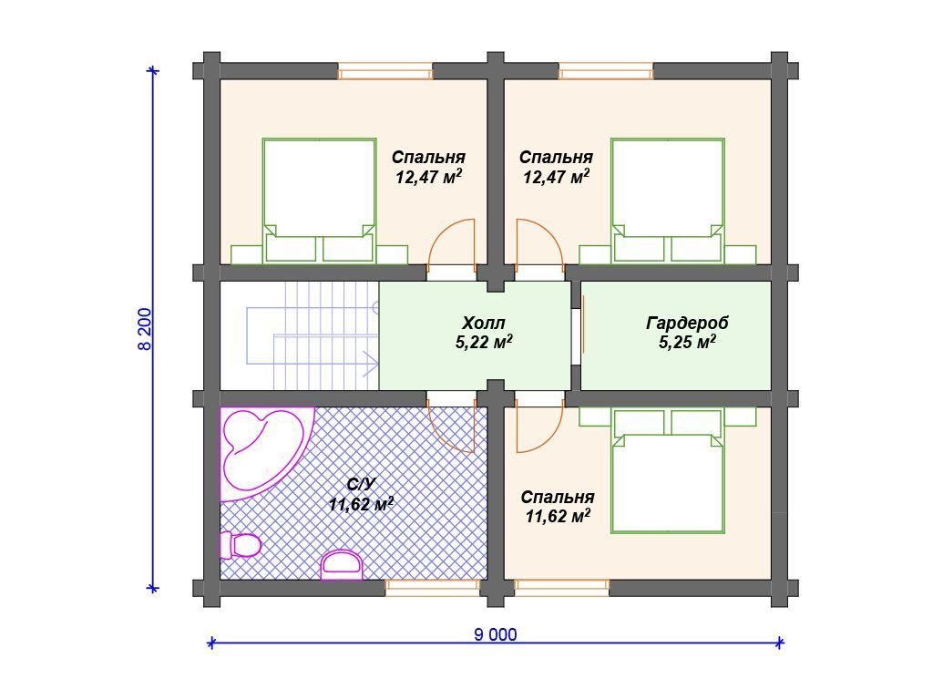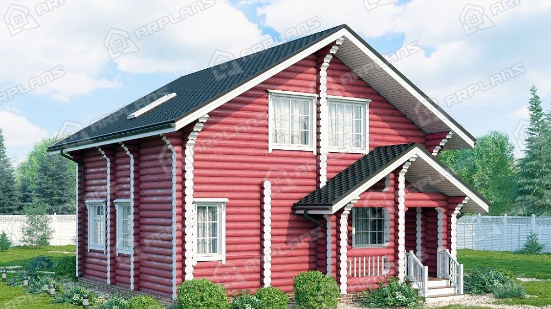Проект деревянного дома из бревна 9 на 9 м с 3 спальнями S4-127 (ДО-143)