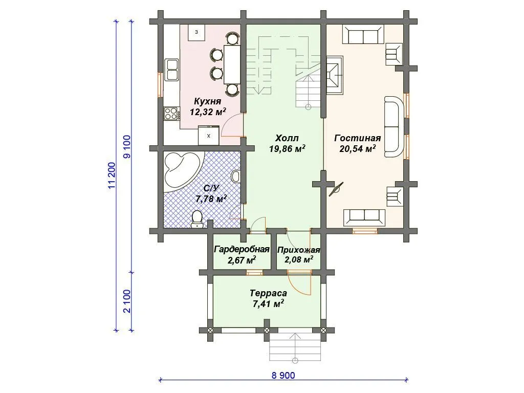 Проект деревянного дома из бревна S4-127 (ДО-089)