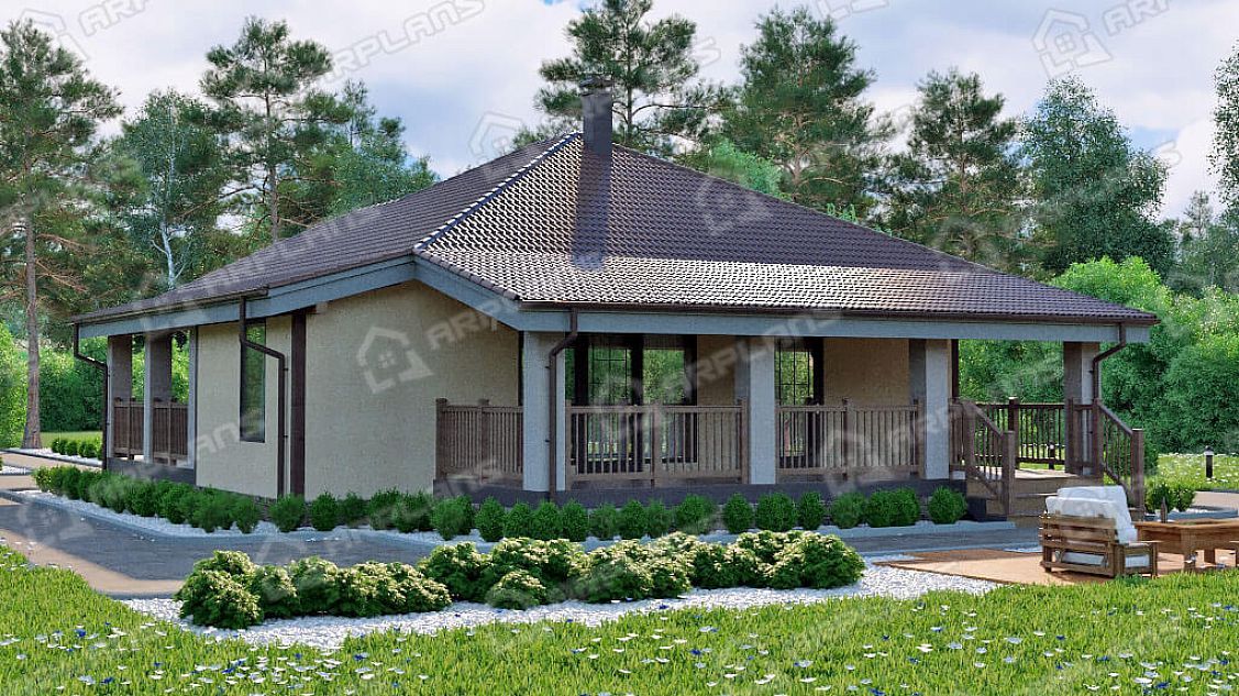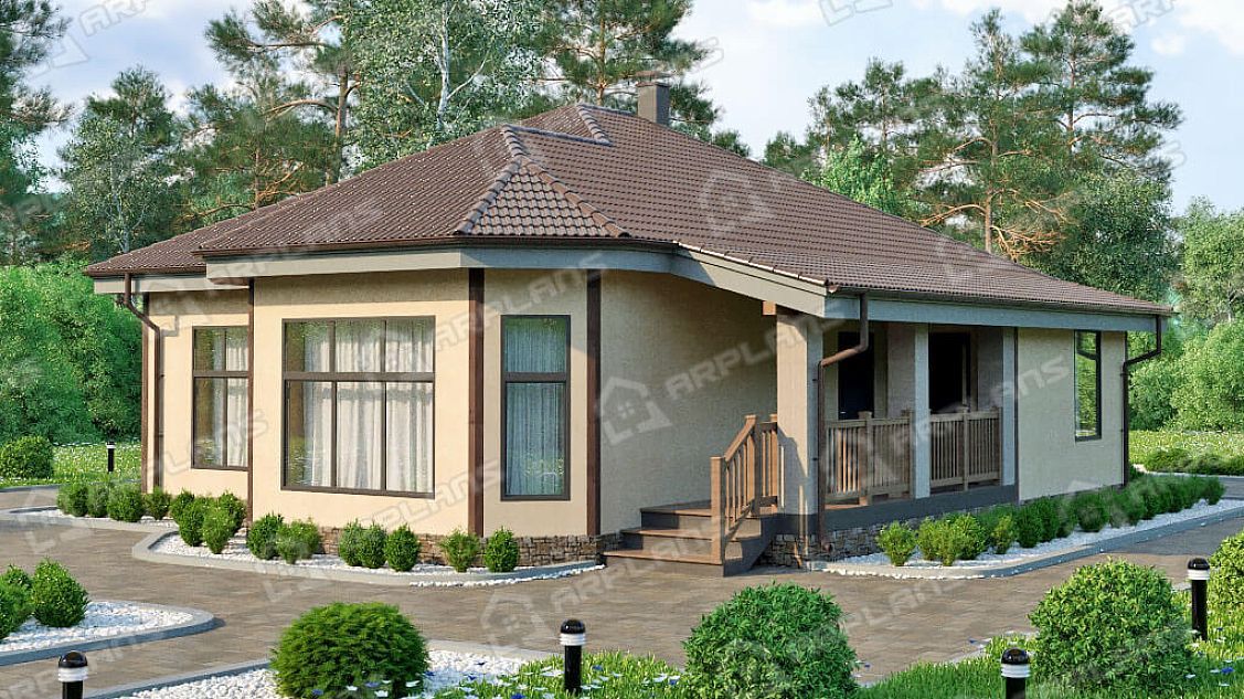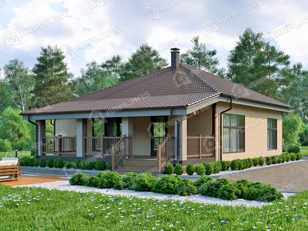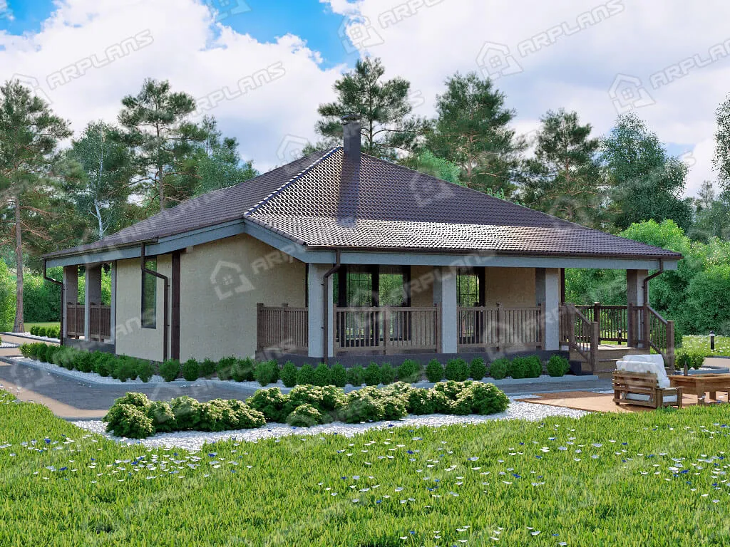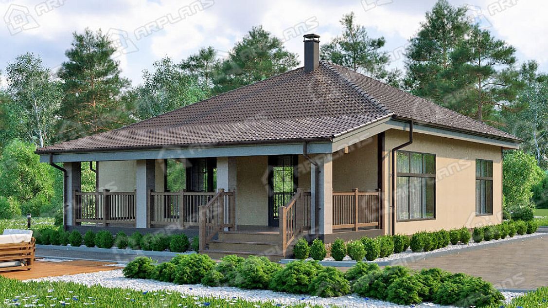 Проект одноэтажного дома с террасой и 2 спальнями S4-127 (К-003)