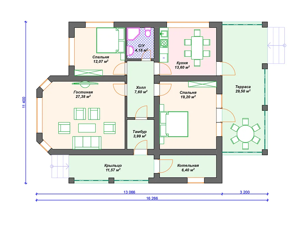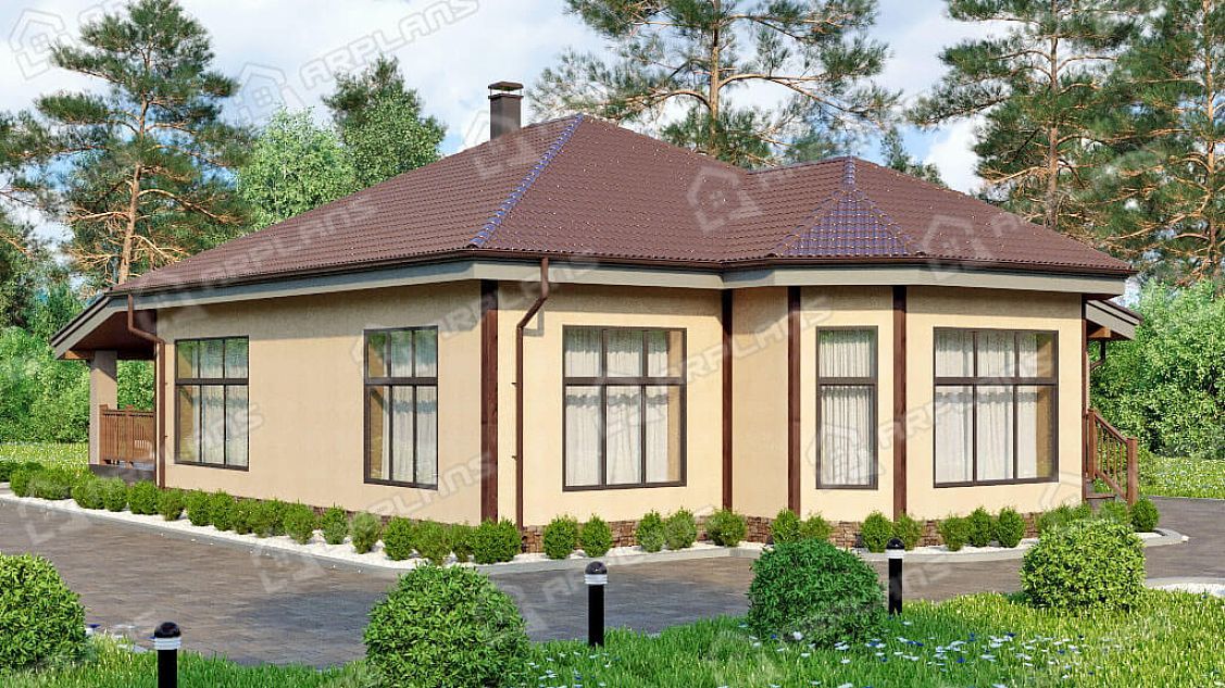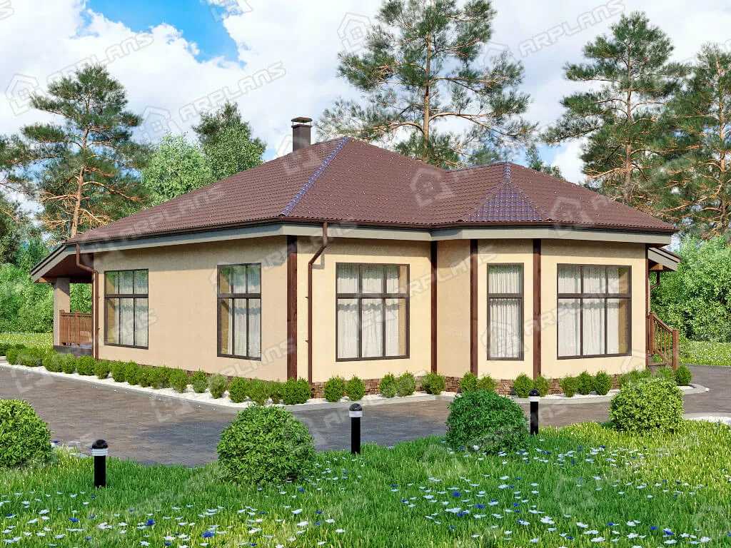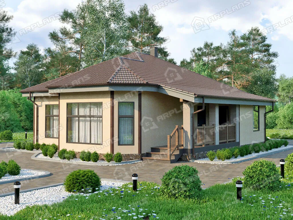 Проект одноэтажного дома с террасой и 2 спальнями S4-127 (К-003)