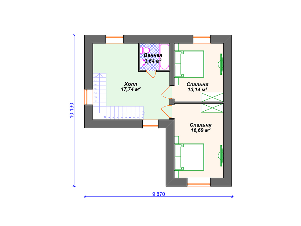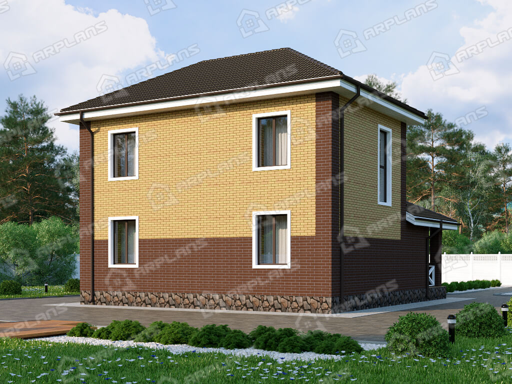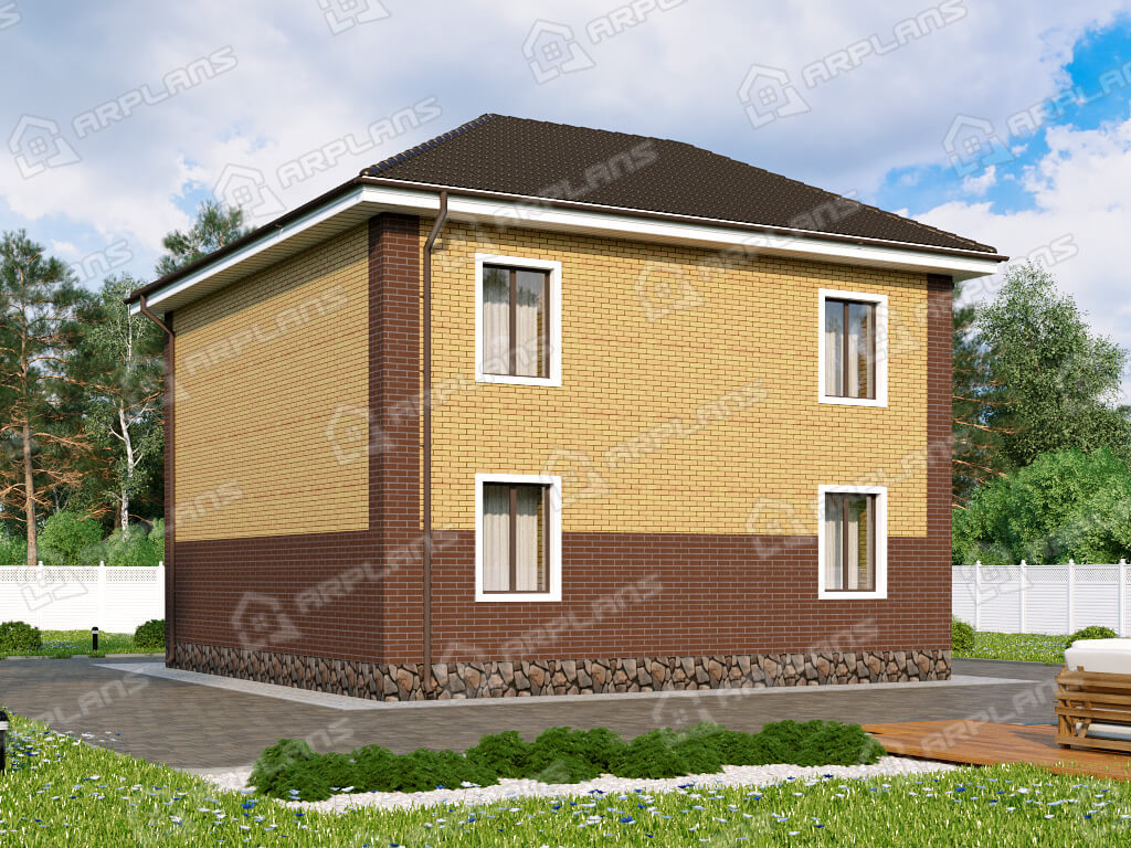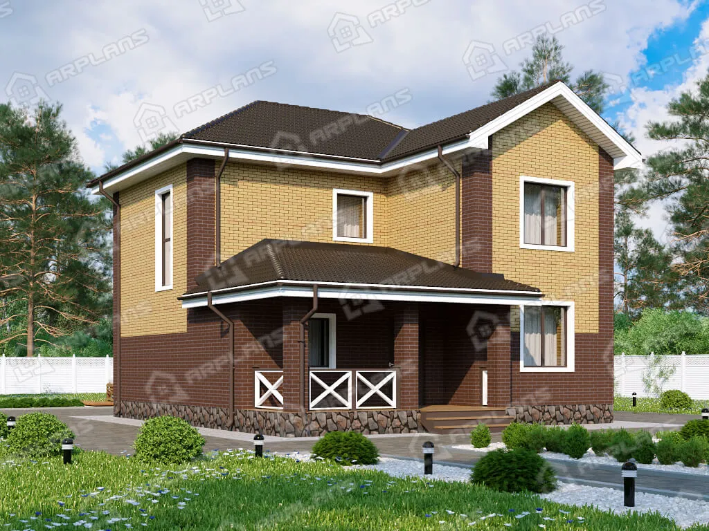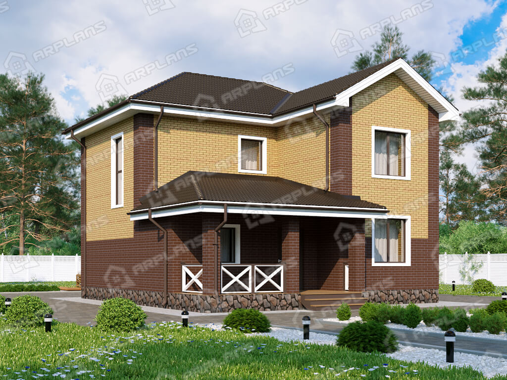 S4-127 (К-350) Дом общей площадью - 127 кв м. Габариты дома - 9.86х11.06 м. Двухэтажный дом с полноценным вторым этажом выполнен из газобетона. Отделка наружных стен - облицовочный кирпич. Конструкция крыши у дома -четырёхскатная. Строительство здания осуществляется на фундаменте - монолитная плита. Перекрытие 1 эт - по плите, 2 эт - монолитное. Покрытие кровли - металлочерепица. Вход в дом осуществляется с террасы расположенной в габаритах дома. Заходим и попадаем в прихожую 4.6 кв м, в которой через небольшую перегородку расположена гардеробная с окном площадью 5.8 кв м. Из прихожей проходим в холл, площадь которого 9 кв м, являющийся центром дома и из него имеется доступ во все помещения. Сразу при входе в холл по левую руку расположена лестница на второй этаж и маленький с/у. Под лестничным маршем - кладовая. В конце холла расположена котельная под газовое оборудование и ванная комната. Правую половину дома занимает гостиная 16.6 кв м и кухня 13 кв м. Кухня и гостиная в доме разделены на 2 отдельных помещения. Поднимаемся на второй этаж и проходим в просторный холл 17.7 кв м. на этаже две спальни 13 кв м и 16.6 кв м, а так же ванная комната 3.6 кв м. Компактный , недорогой дом в строительстве, но позволяющий расположить для проживания семью из 3 человек.
