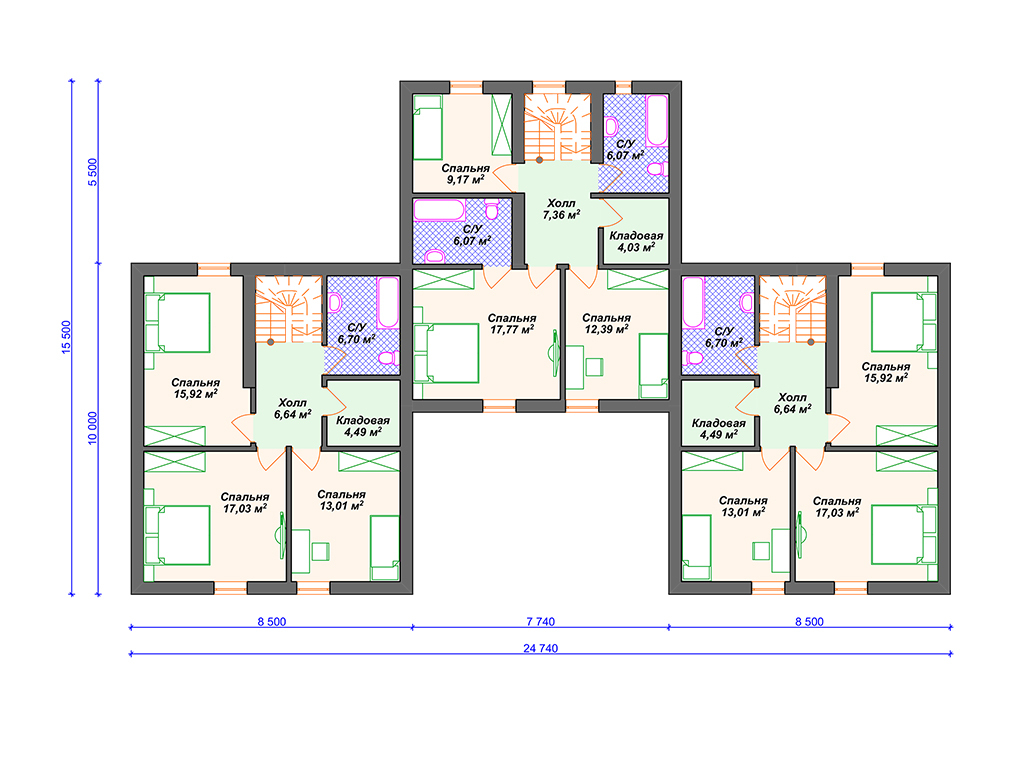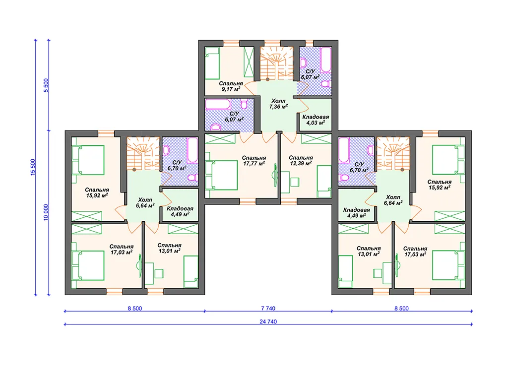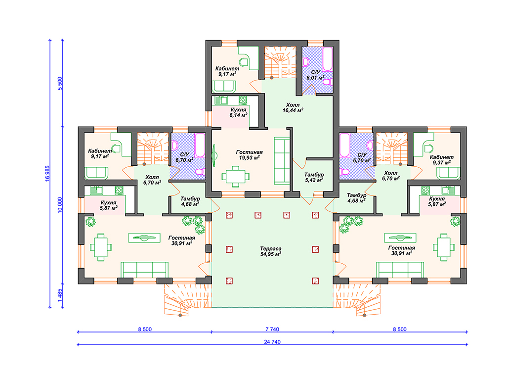 Проект таунхауса на 3 семьи S4-128 (К-310)