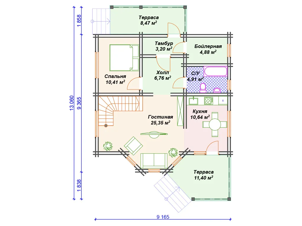 | Материал стен | оцилиндрованное бревно, профилированный брус, клееный брус |