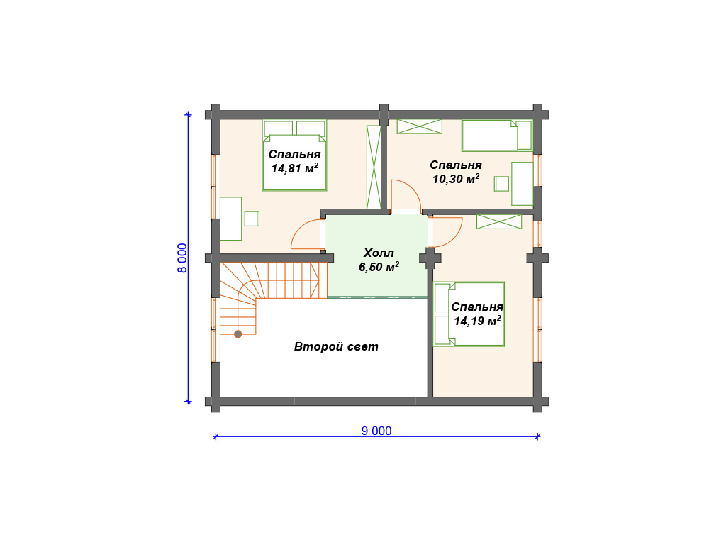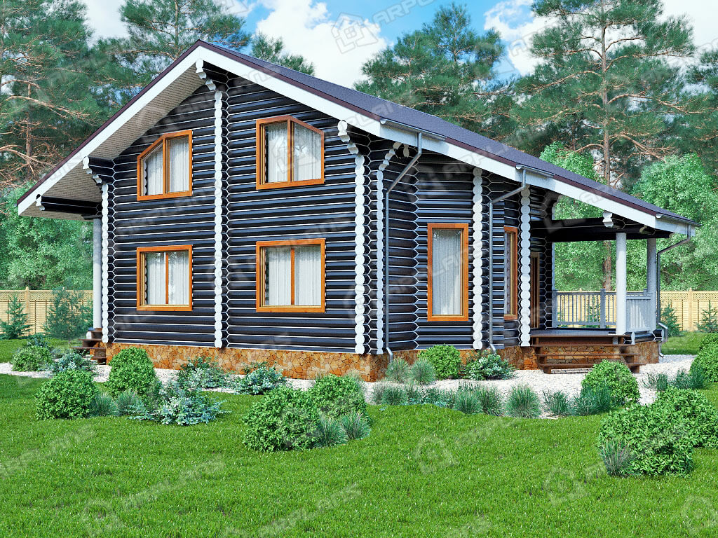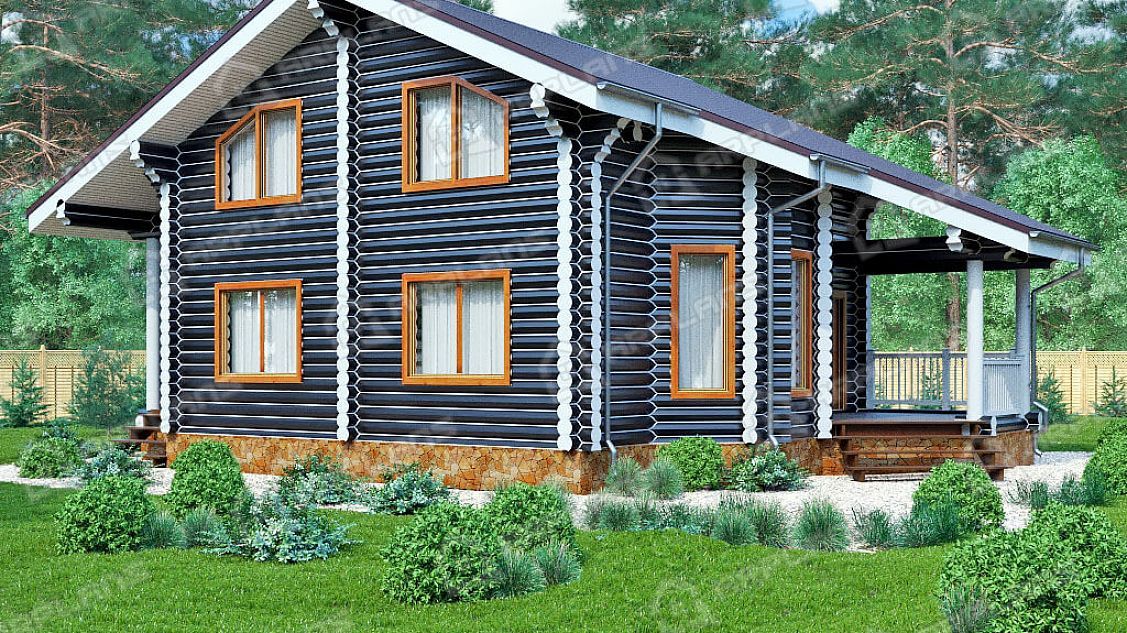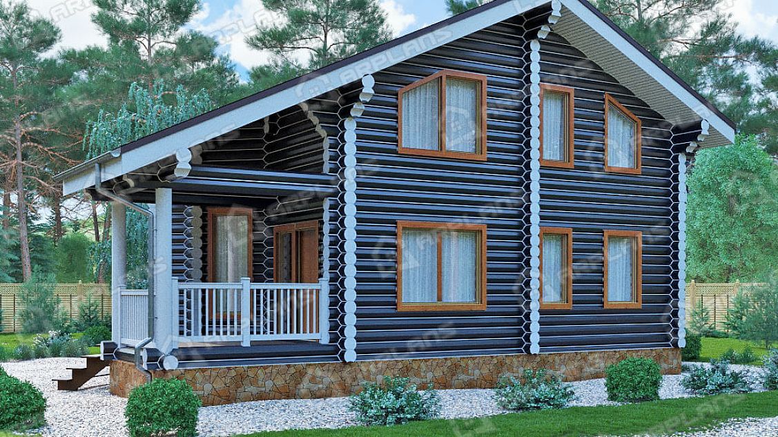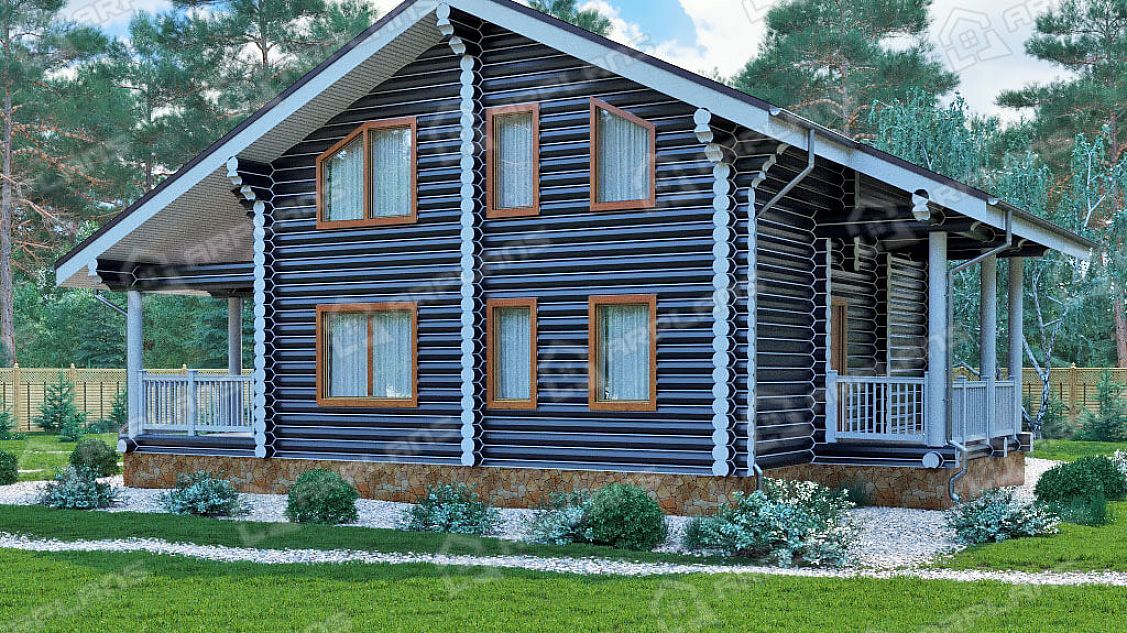 Проект деревянного дома из бревна 9 на 9 с эркером S4-132 (ДО-022)