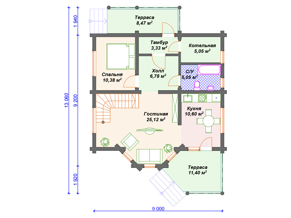 | Материал стен | оцилиндрованное бревно, профилированный брус, клееный брус |