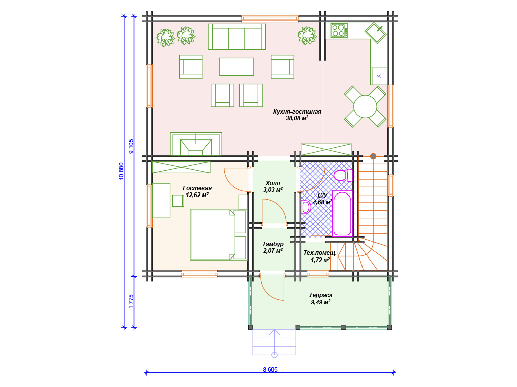 | Материал стен | оцилиндрованное бревно, профилированный брус, клееный брус |