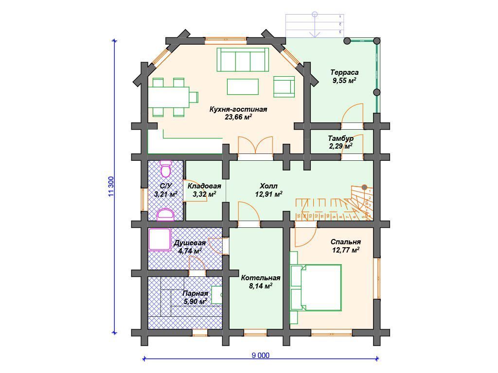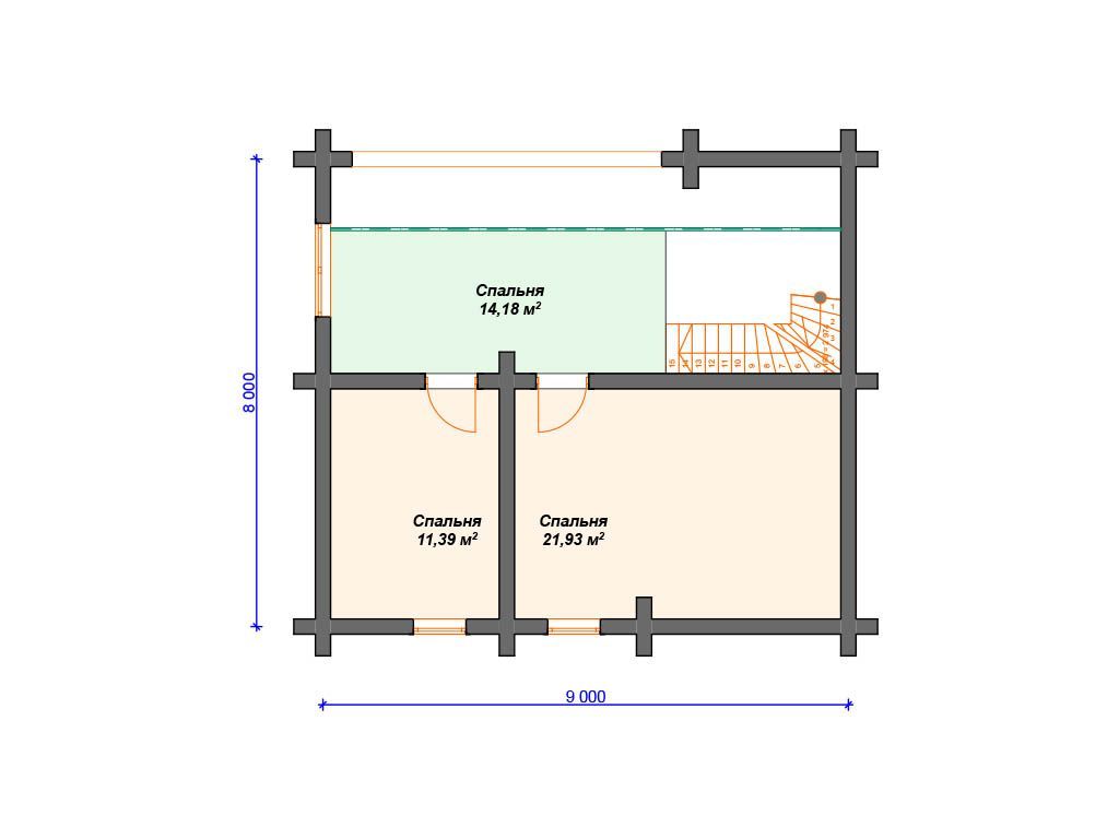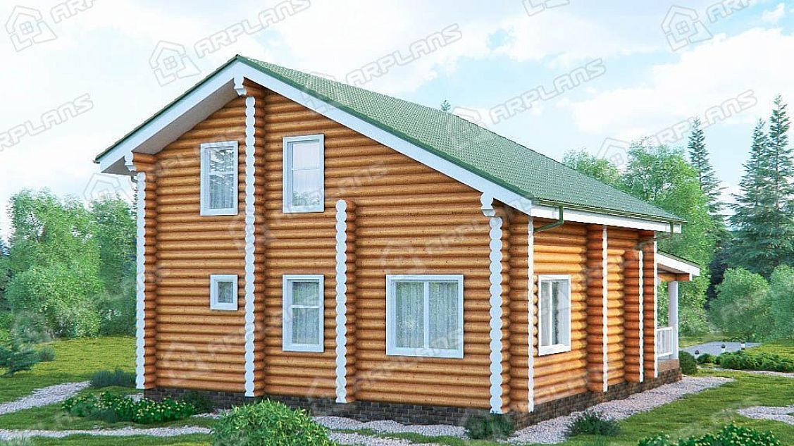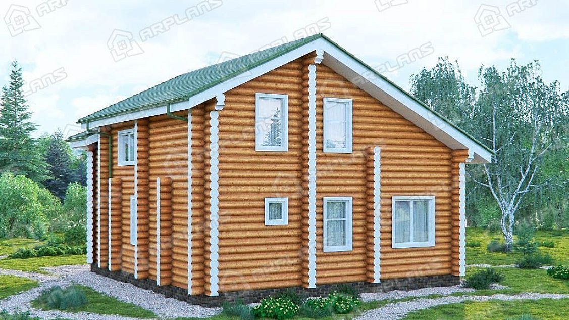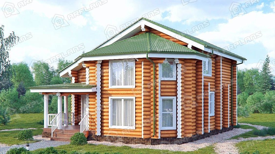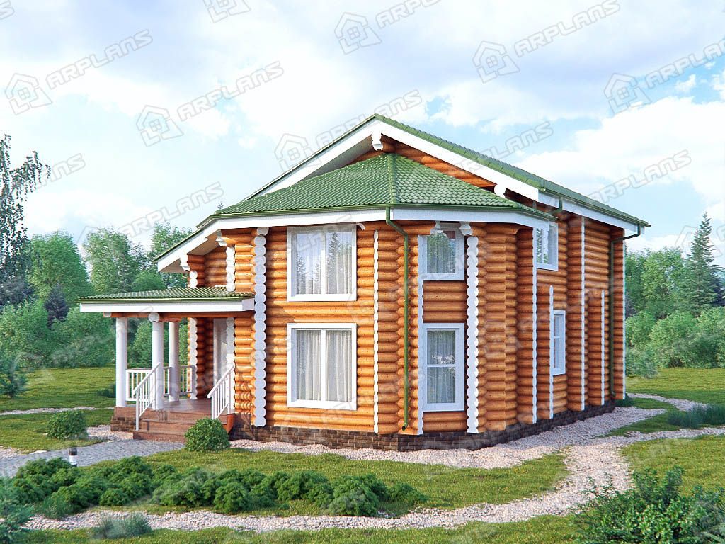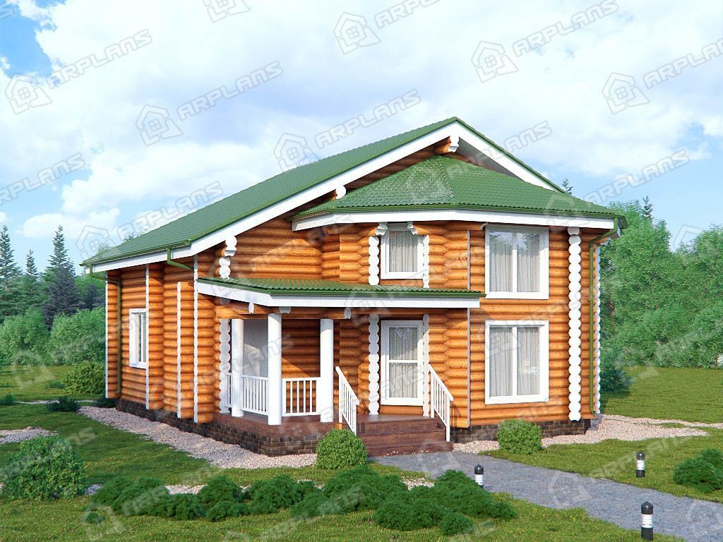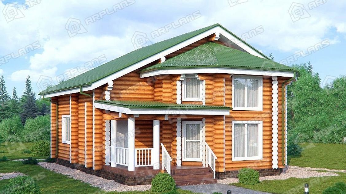 Проект деревянного дома из бревна 9 на 11 м с 3 спальнями и эркером S4-134 (ДО-105)