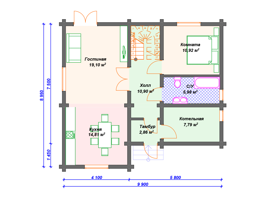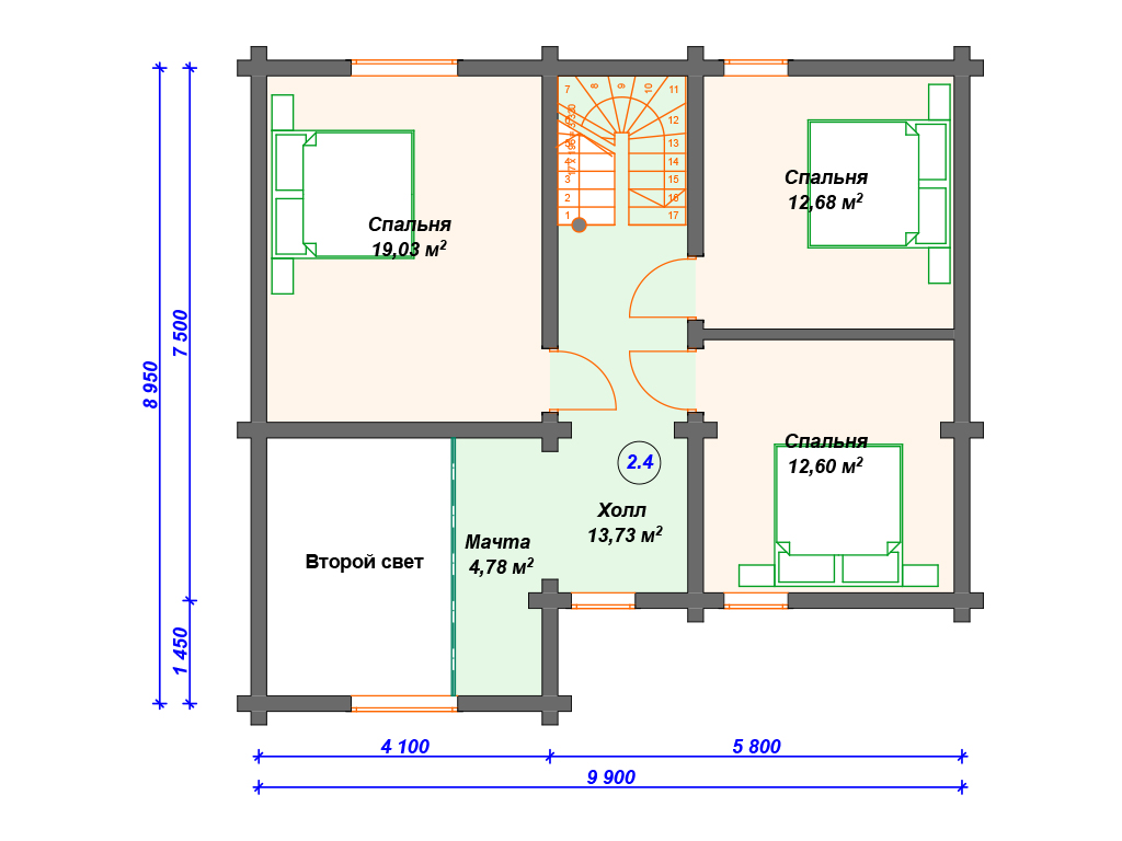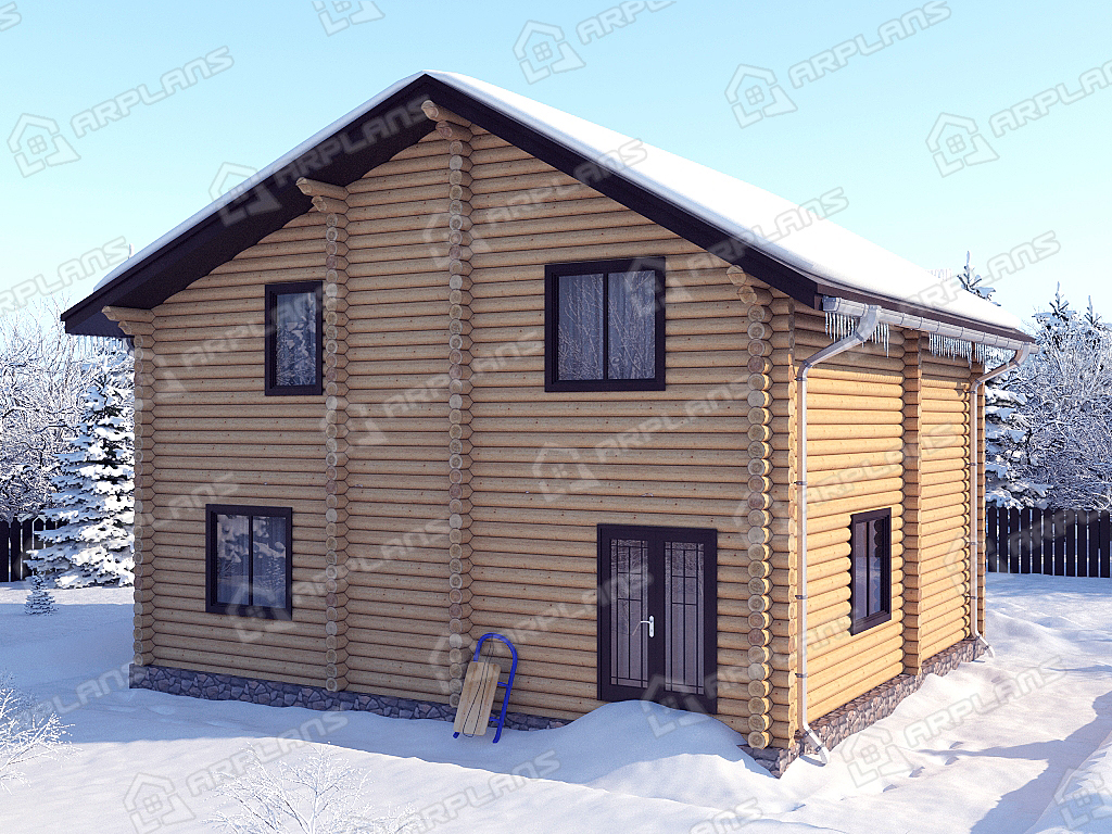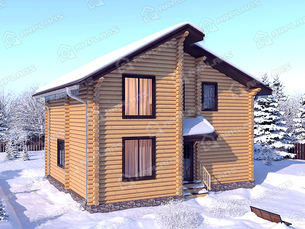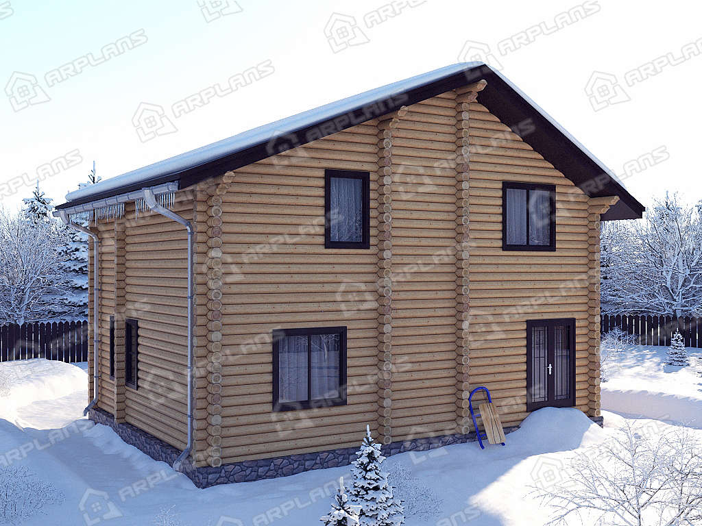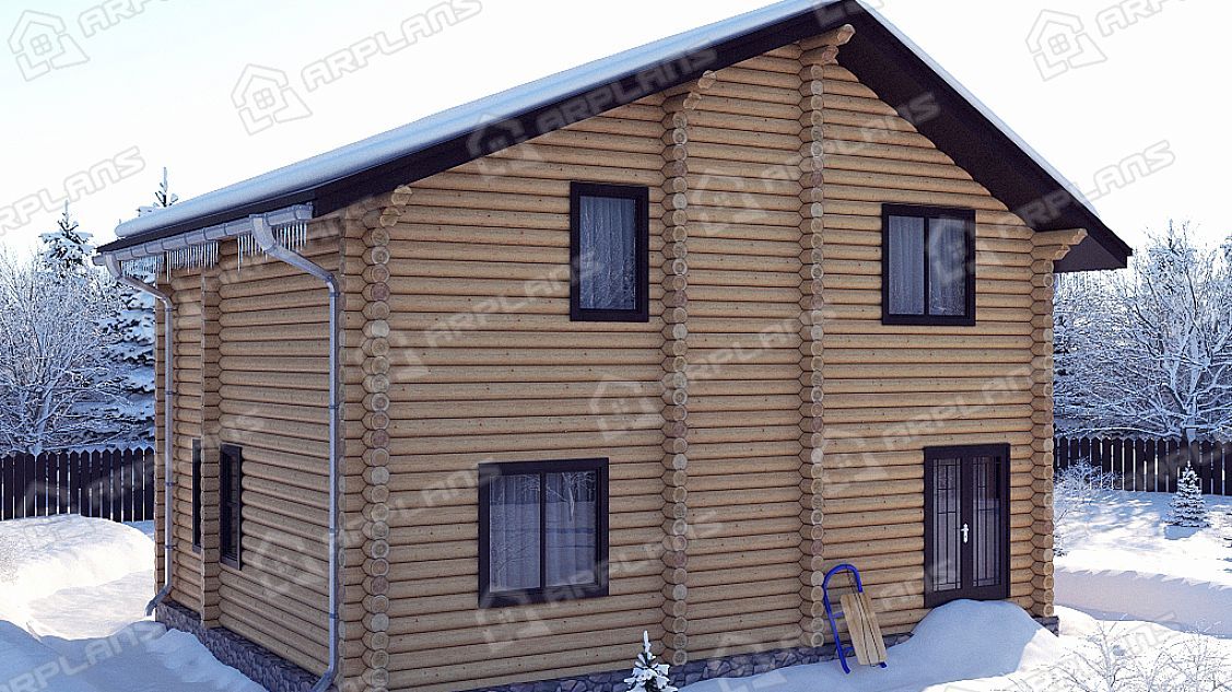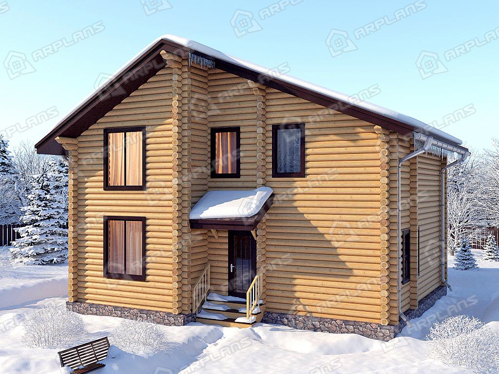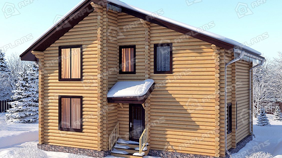 Проект деревянного дома из бревна 9 на 10 м с 3 спальнями S4-135 (ДО-018)