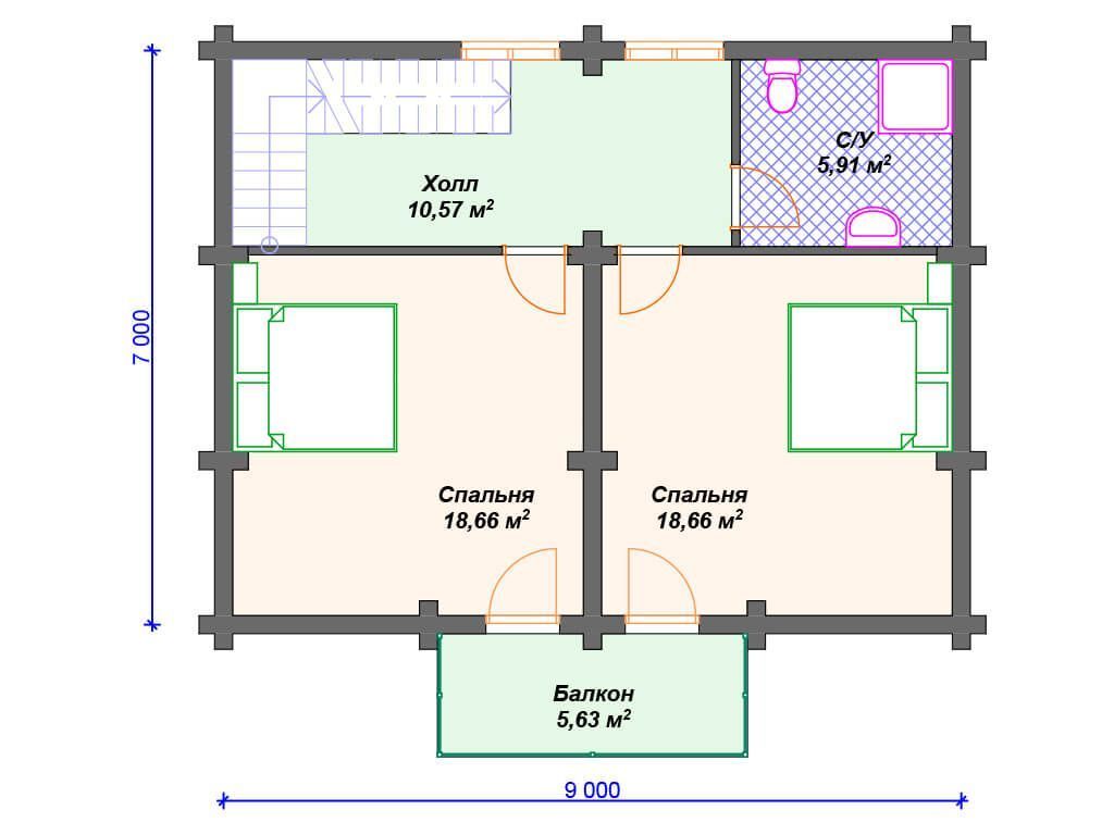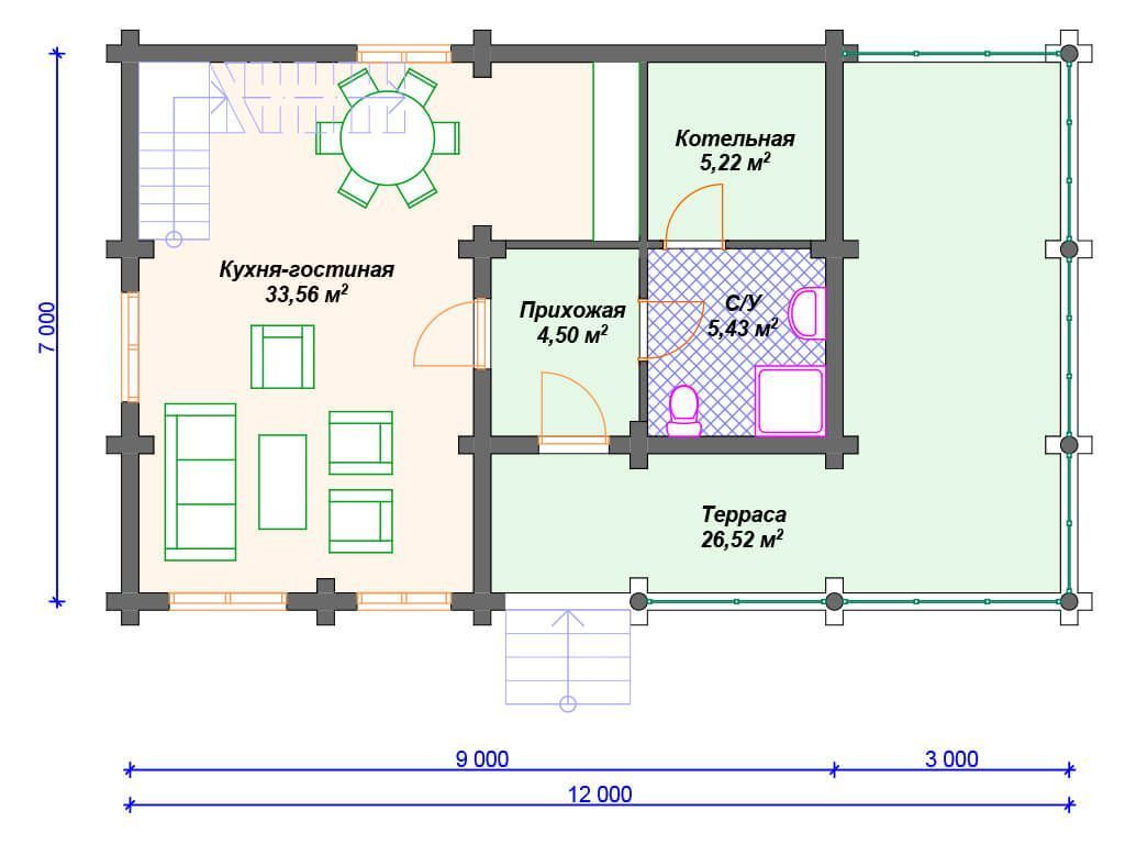 Проект деревянного дома из бревна 7 на 12 м S4-135 (ДО-152)