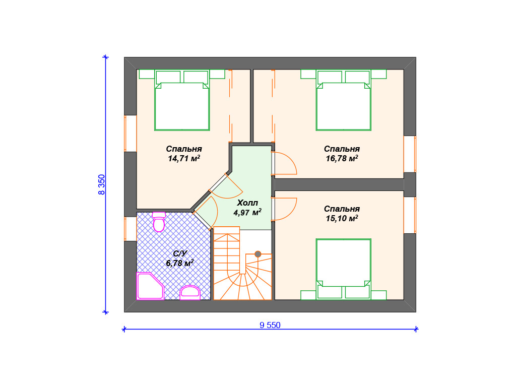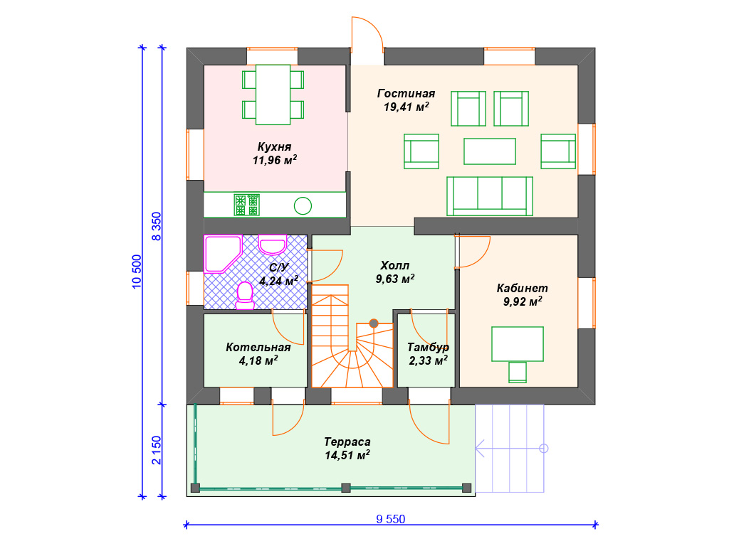 Проект каменного дома с 3 спальнями S4-135 (К-199)