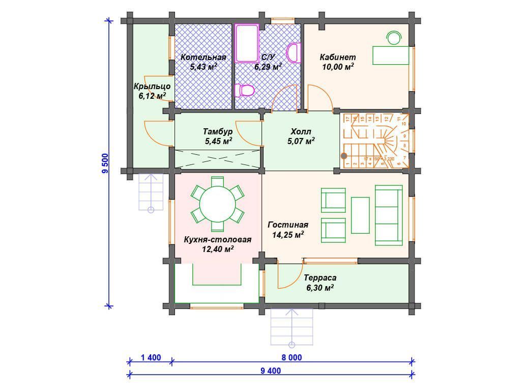Проект деревянного дома из бревна S4-137 (ДО-150)
