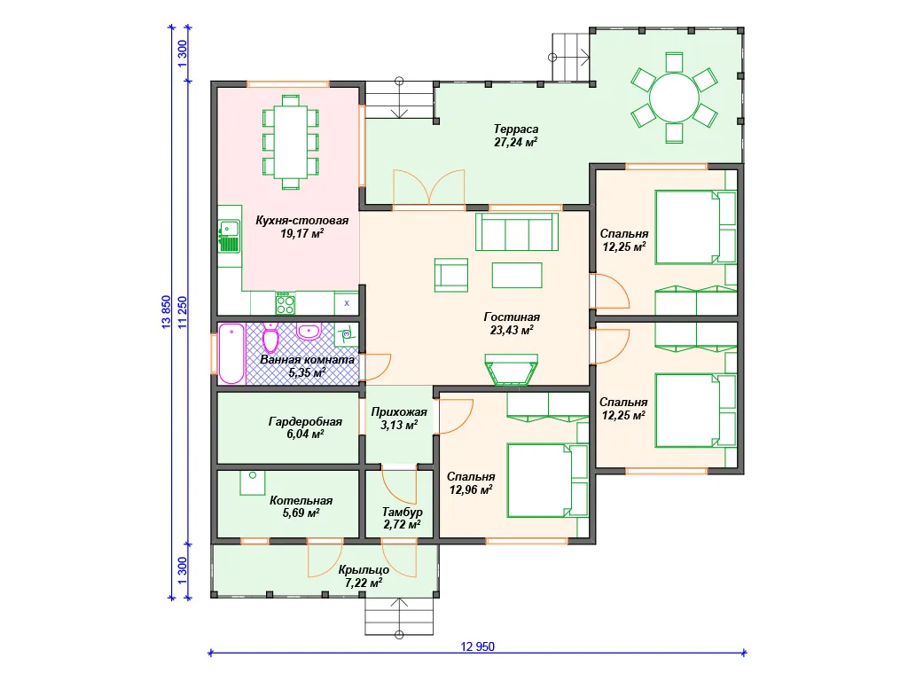 Проект каркасного дома с 3 спальнями S4-137 (И-047)
