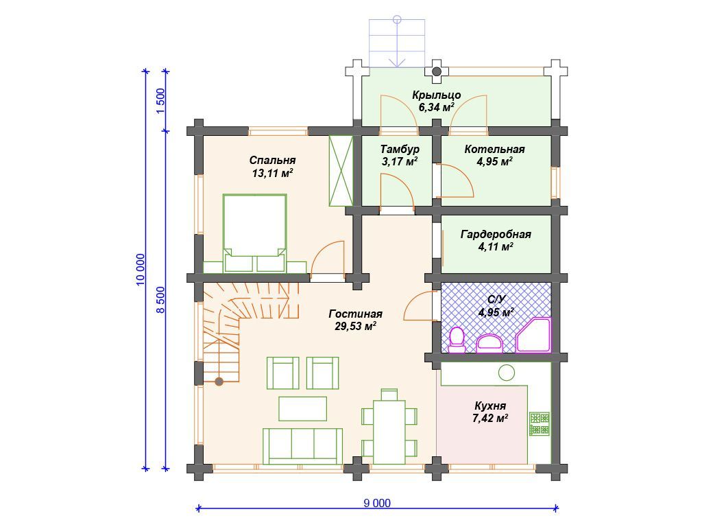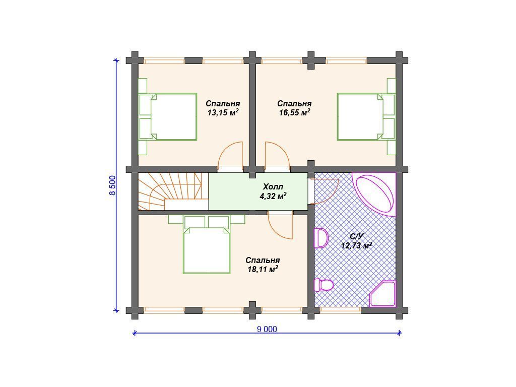 Проект деревянного дома из бревна 9 на 9 м с мансардой S4-138 (ДО-140)