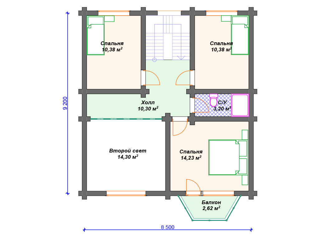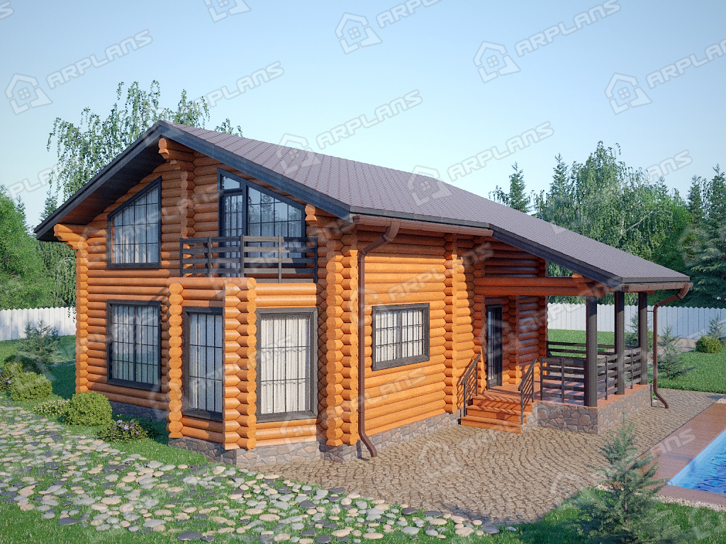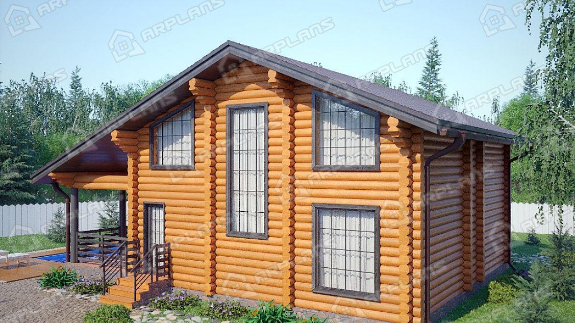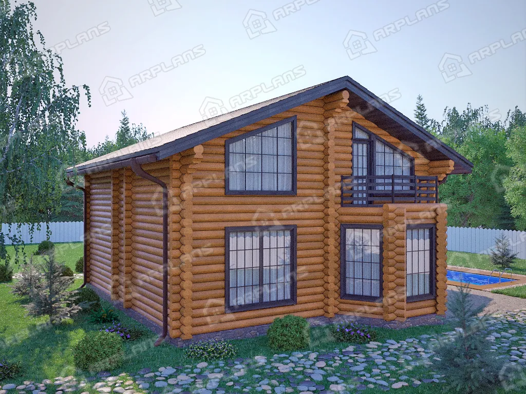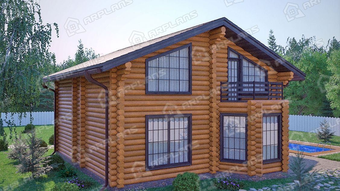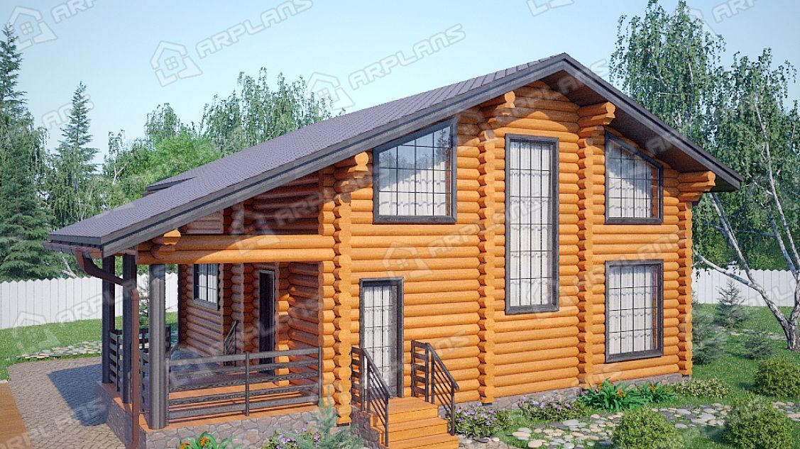 Проект деревянного дома из бревна 8 на 9 м с 3 спальнями и мансардой S4-140 (ДО-049)