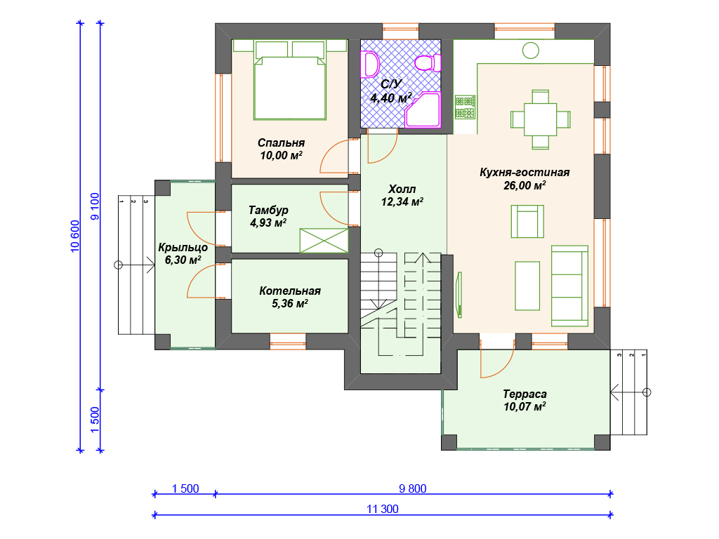 | Возможный материал кровли | металлочерепица, гибкая черепица, керамическая черепица, композитная черепица, цементно-песчаная черепица, фальцевая кровля |