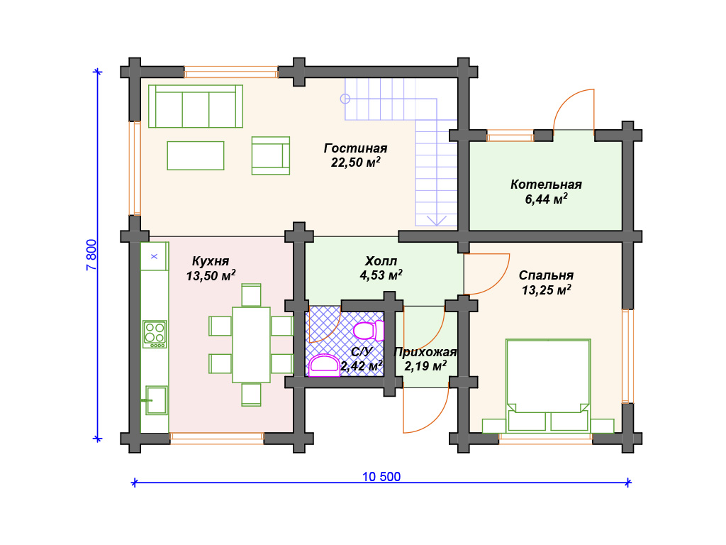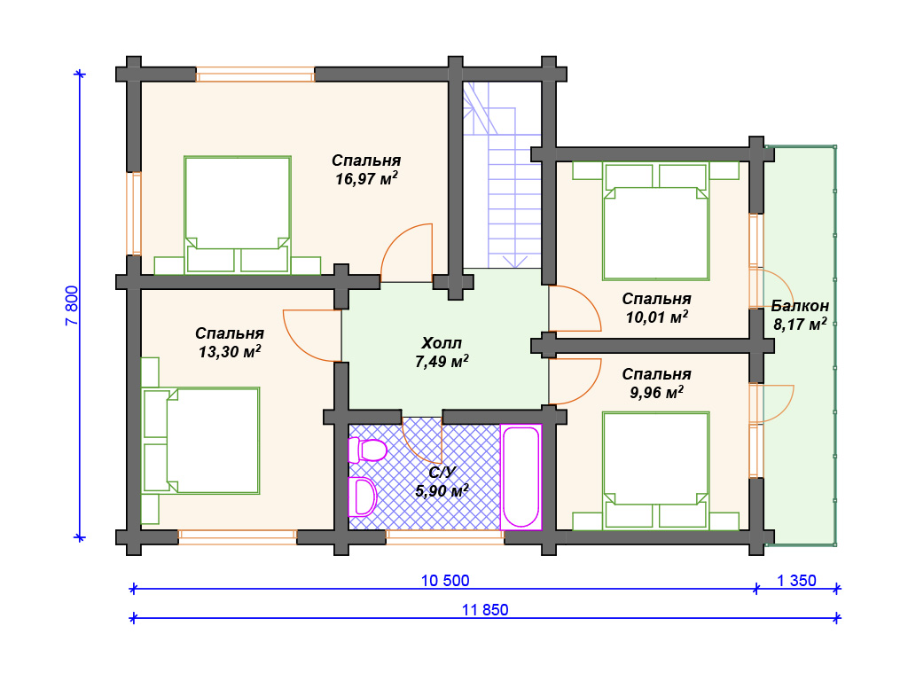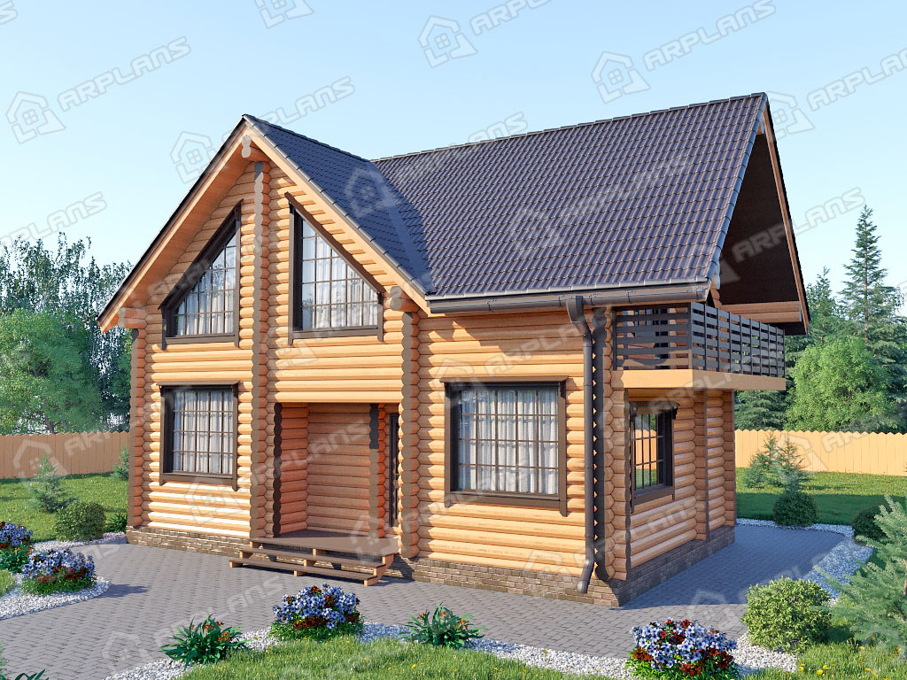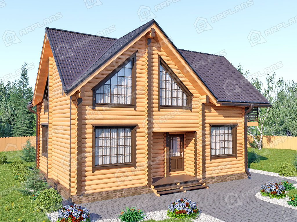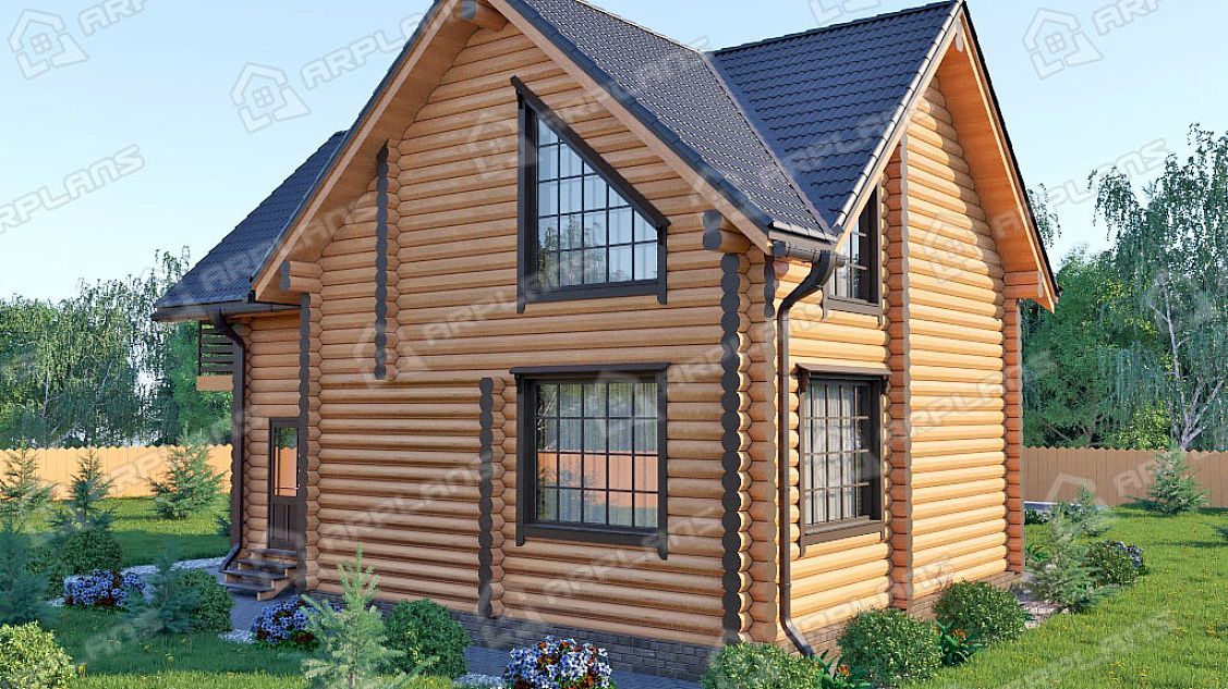 Проект деревянного дома из бревна 8 на 10 м с мансардой S4-141 (ДО-036)