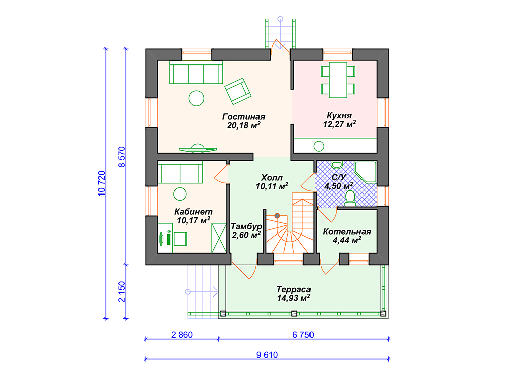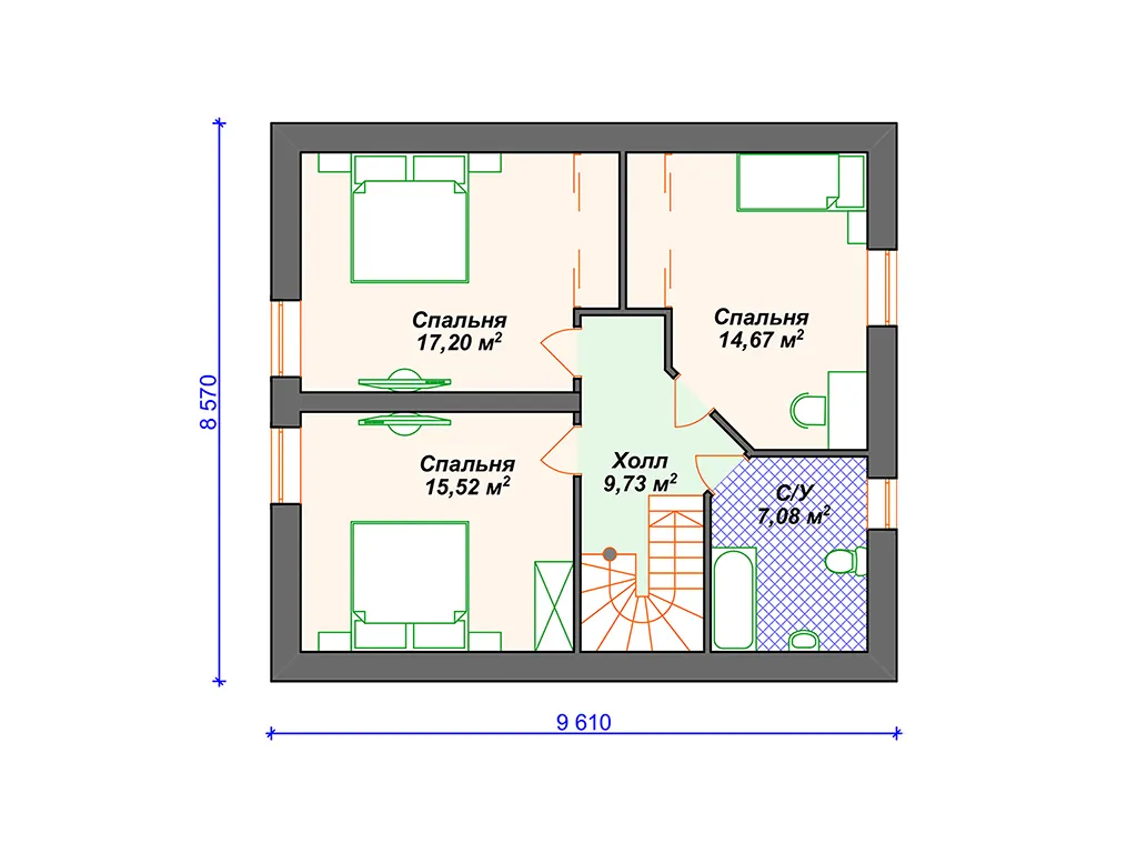 Проект дома с мансардой, 3 спальнями и террасой S4-143 (К-370)