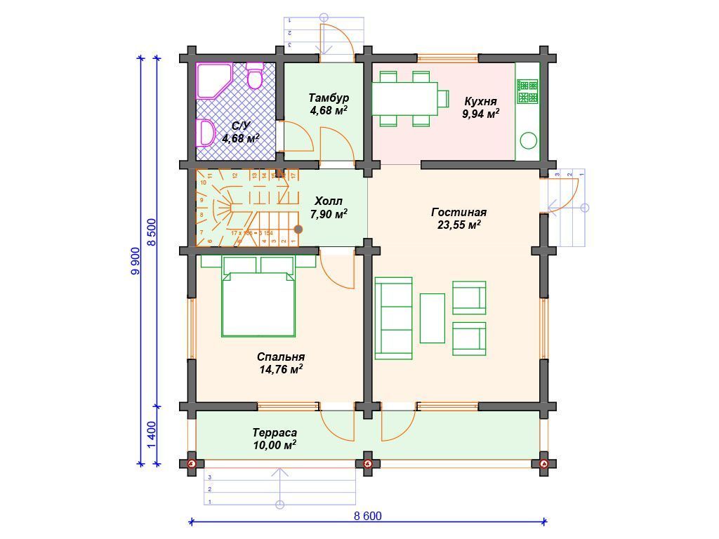 | Материал стен | оцилиндрованное бревно, профилированный брус, клееный брус |