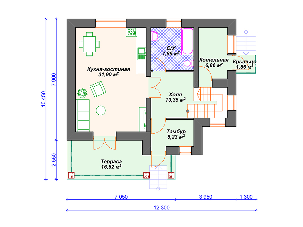 | Возможный материал кровли | металлочерепица, гибкая черепица, керамическая черепица, композитная черепица, цементно-песчаная черепица, фальцевая кровля |