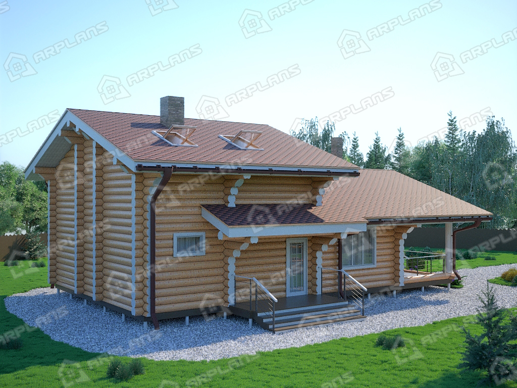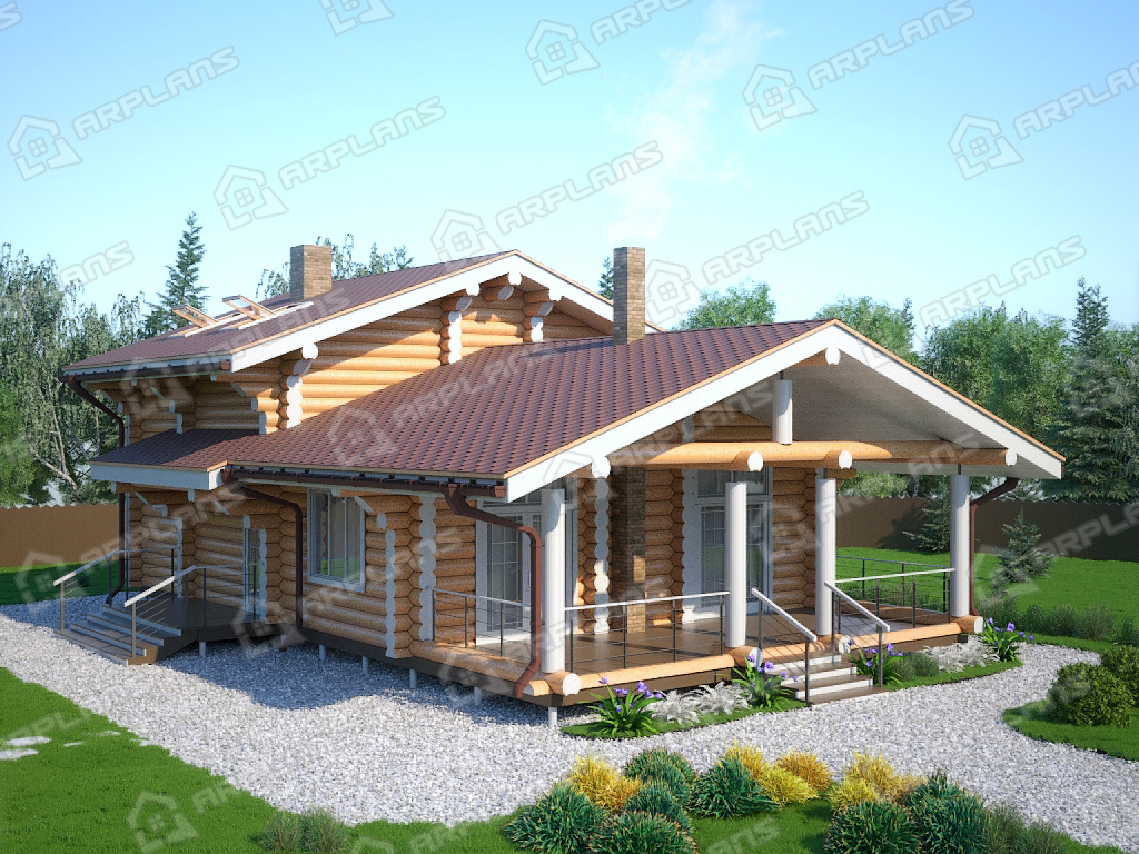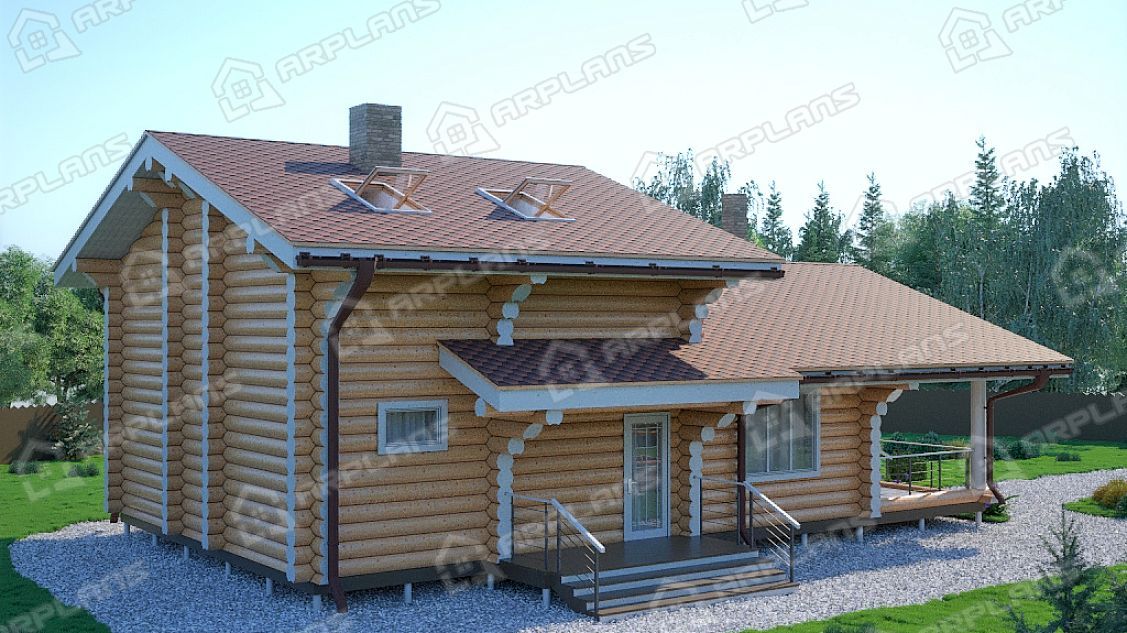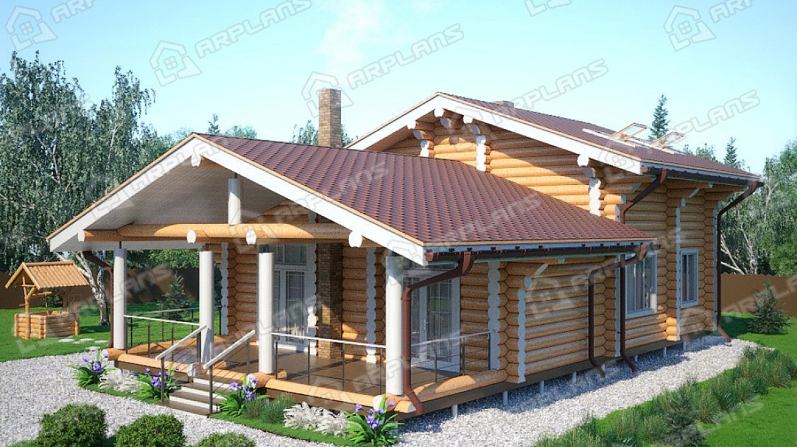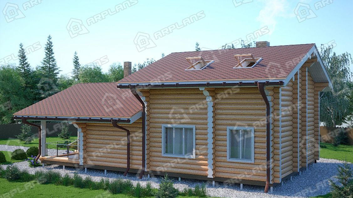 Проект деревянного дома из бревна 8 на 11 м с сауной S4-147 (ДО-046)