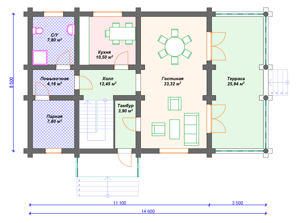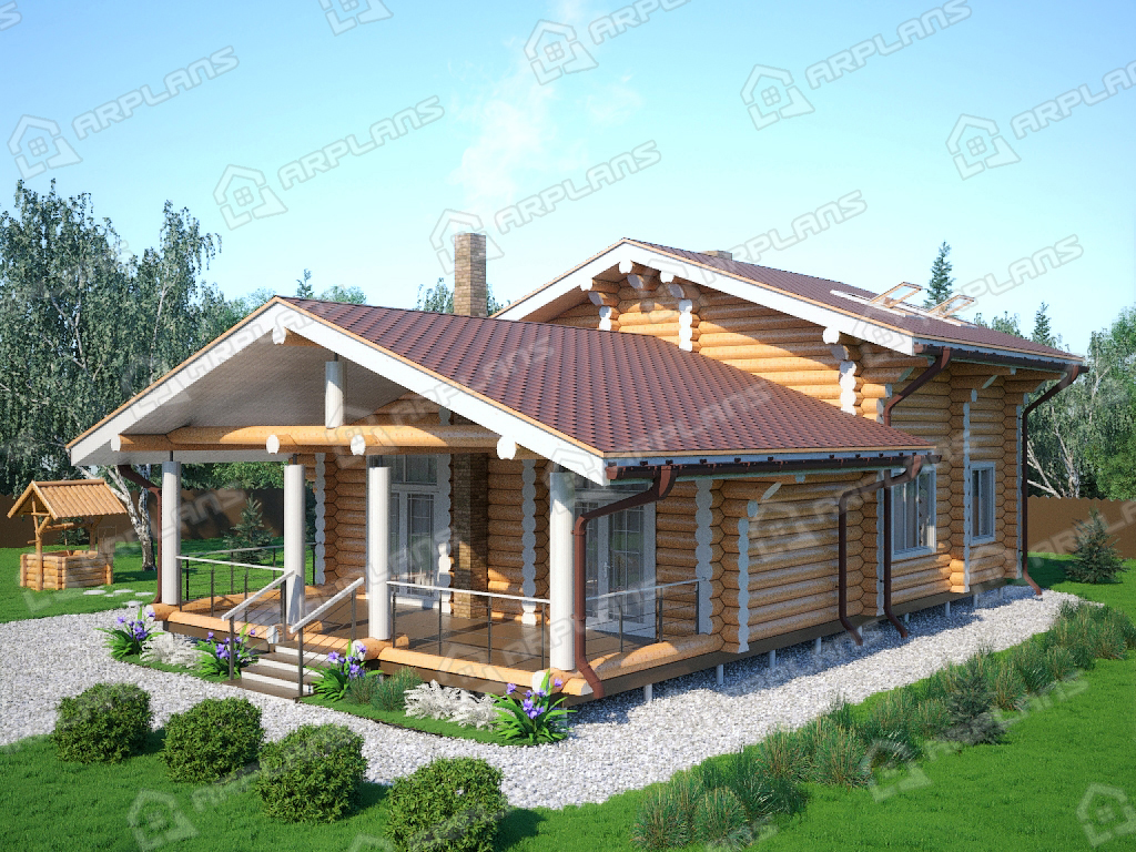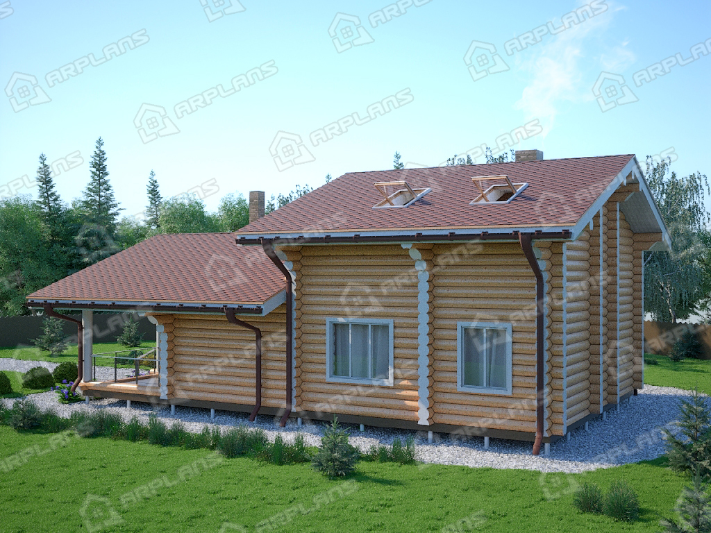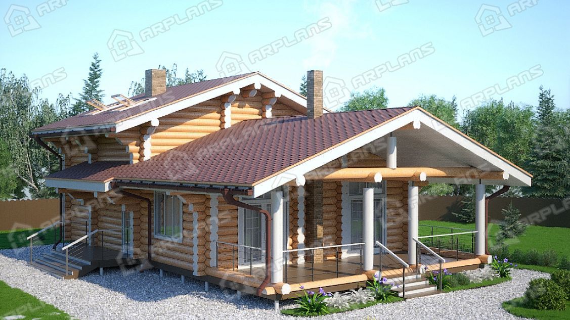 Проект деревянного дома из бревна 8 на 11 м с сауной S4-147 (ДО-046)