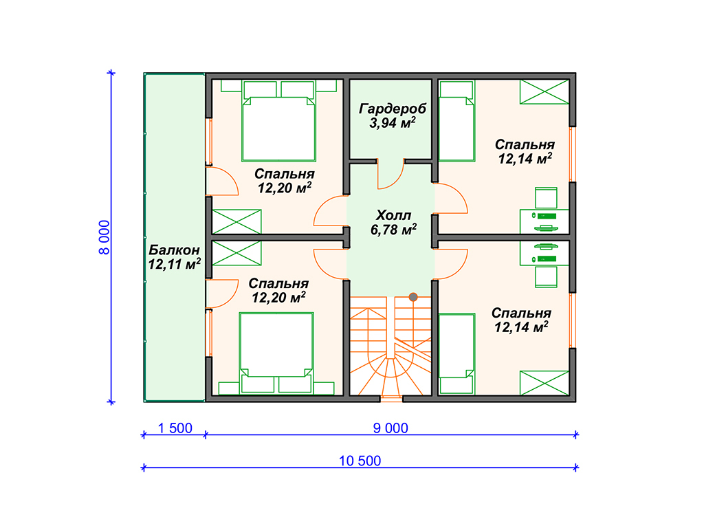 Проект каркасного дома с мансардой и 4 спальнями S4-147 (И-097)