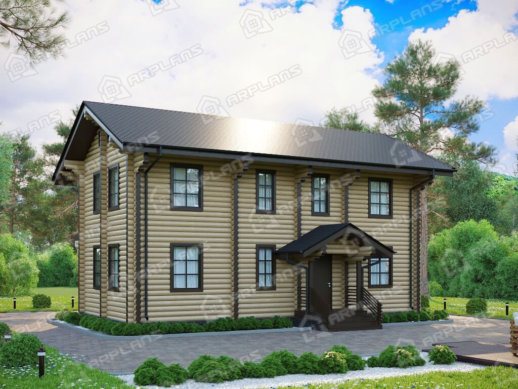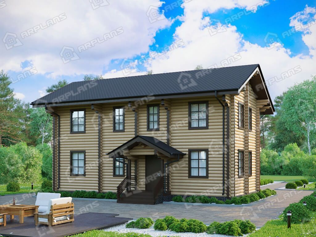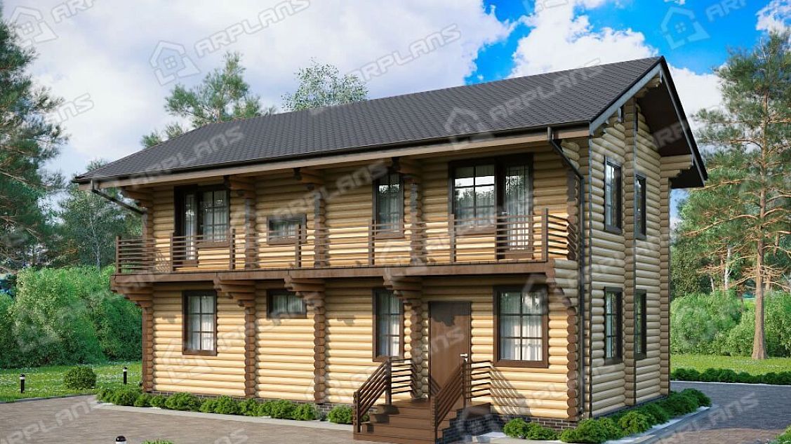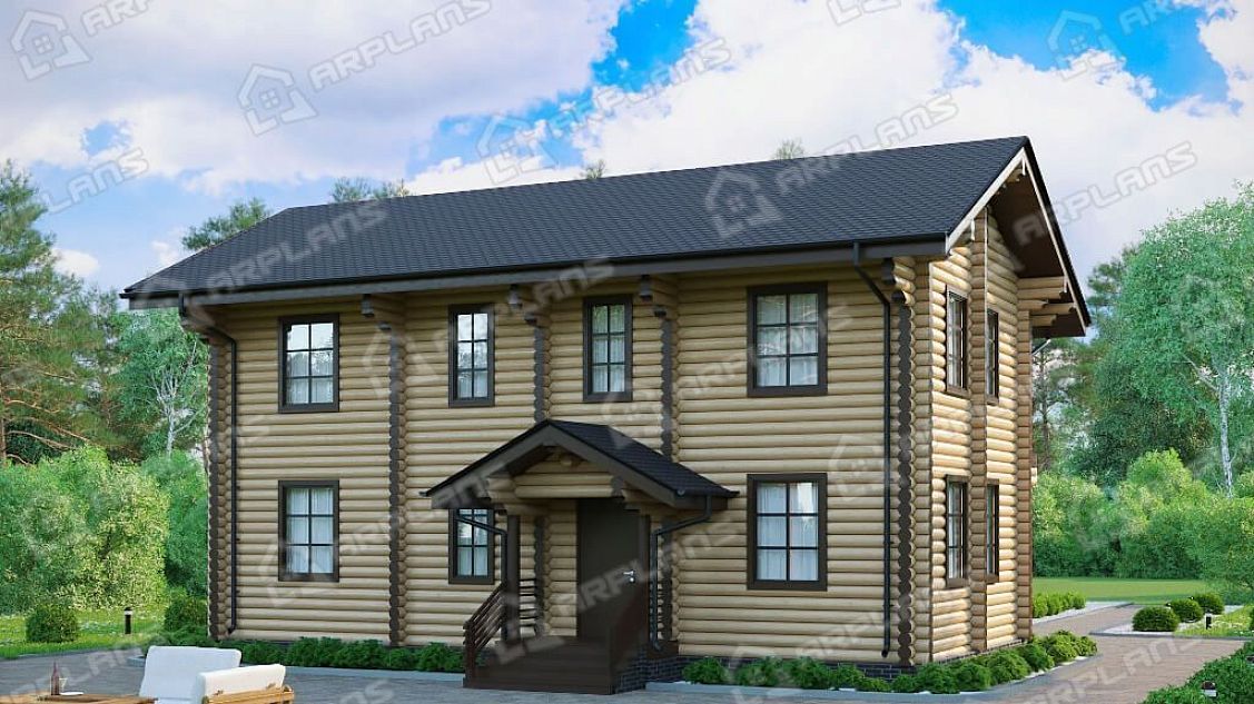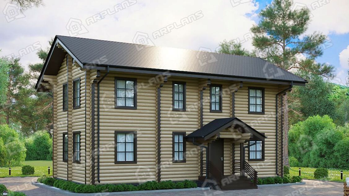 Проект деревянного дома из бревна для узкого участка с 3 спальнями S4-151 (ДО-162)