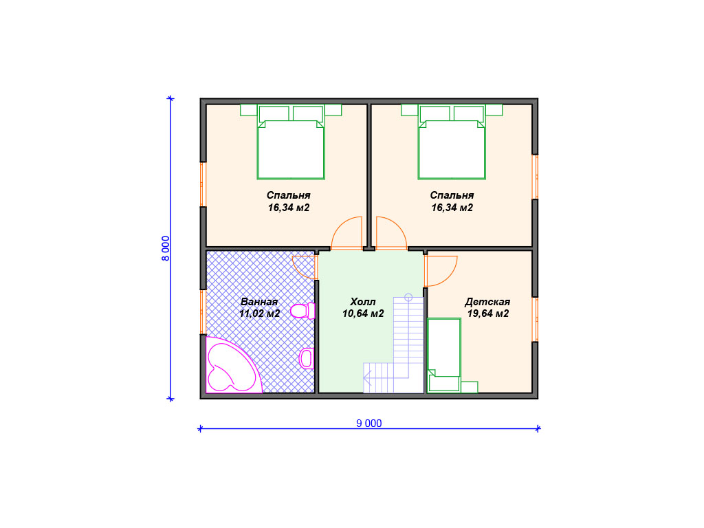 Проект каркасного дома с 3 спальнями S4-151 (И-061)